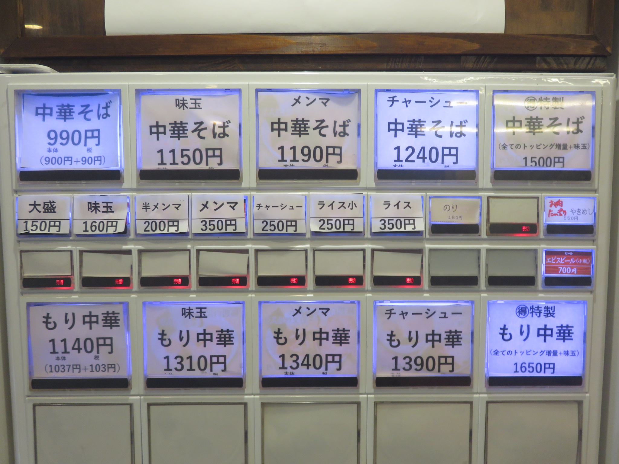 メニューは中華そば、もり中華のツートップ体制となっており、組み合わせで味玉、メンマ、チャーシュー、特製が選べるようです。