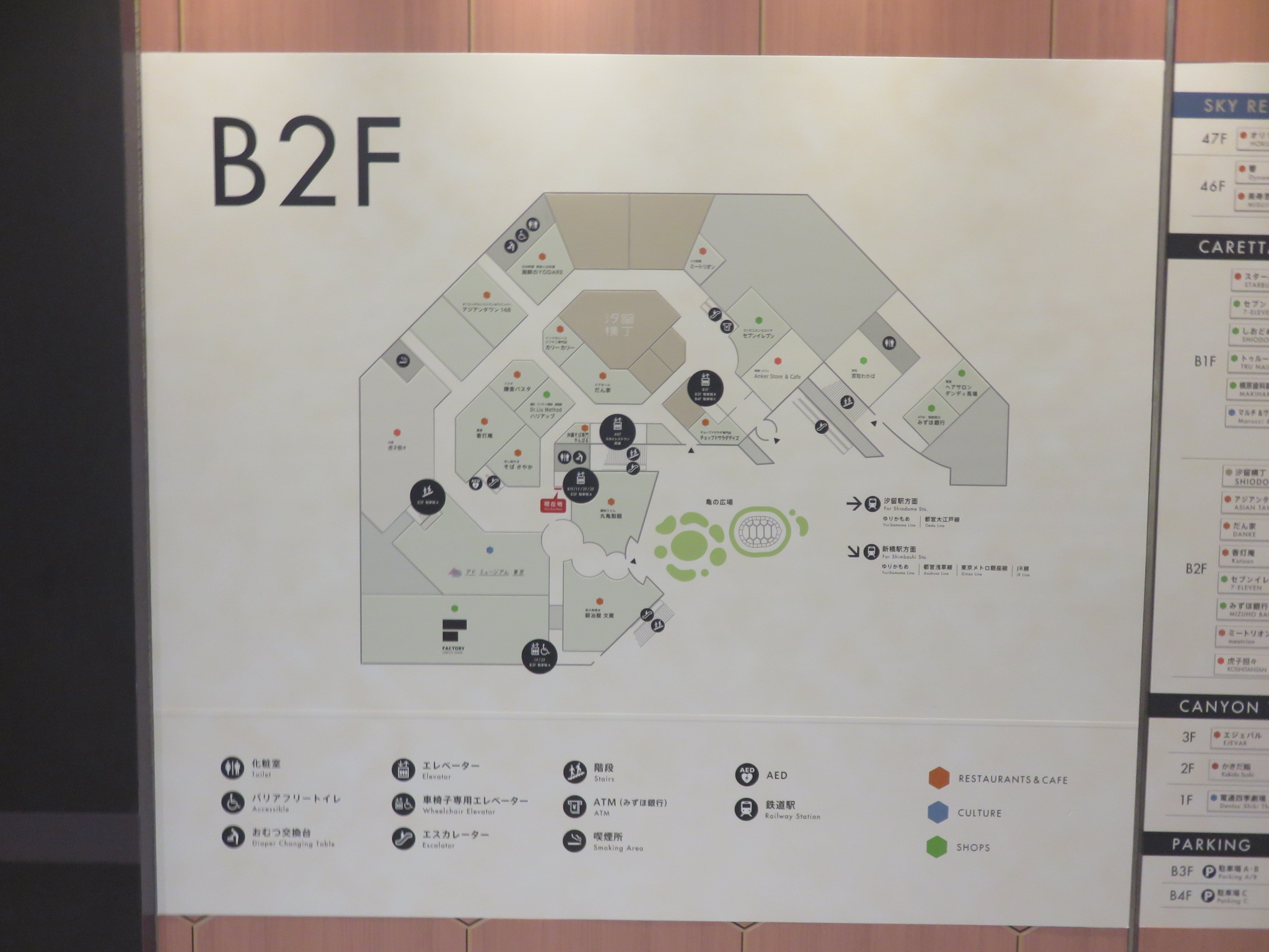 カレッタ汐留のフロアマップを確認して、右奥の汐留横丁まで向かいます。