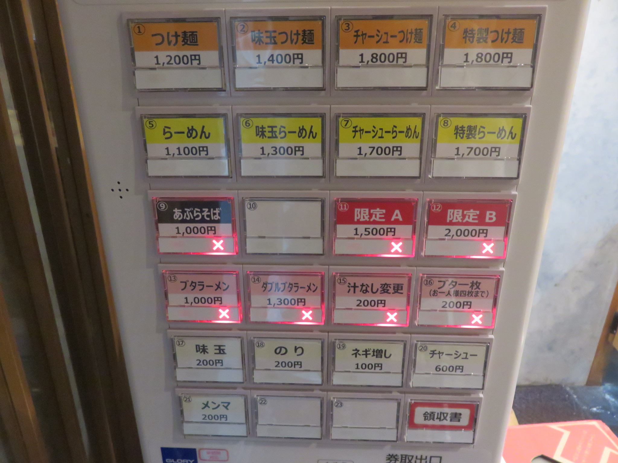メニューはつけ麺、らーめん、あぶらそばのラインアップとなっており、組み合わせで味玉、チャーシュー、特製が選べるようです。