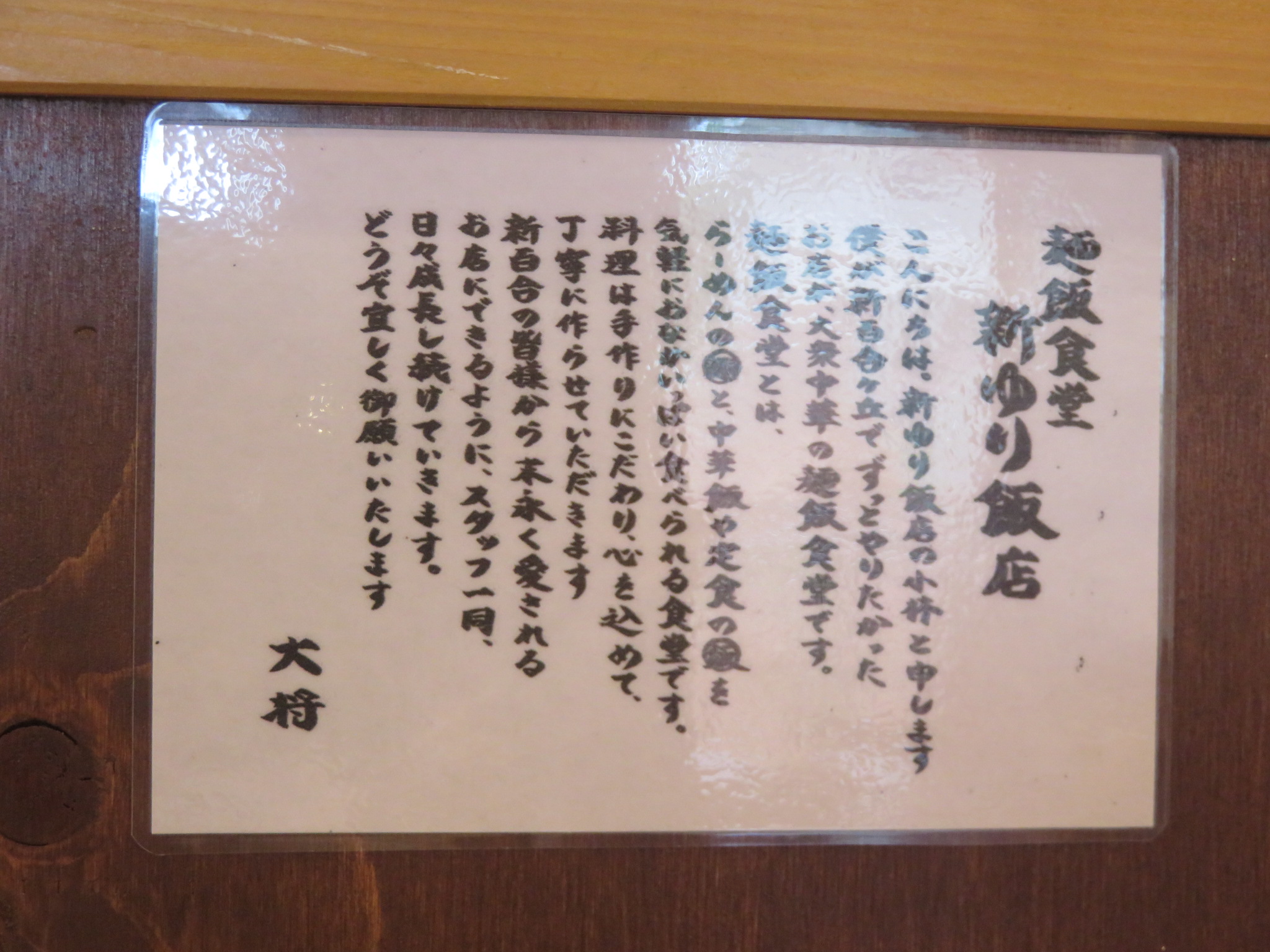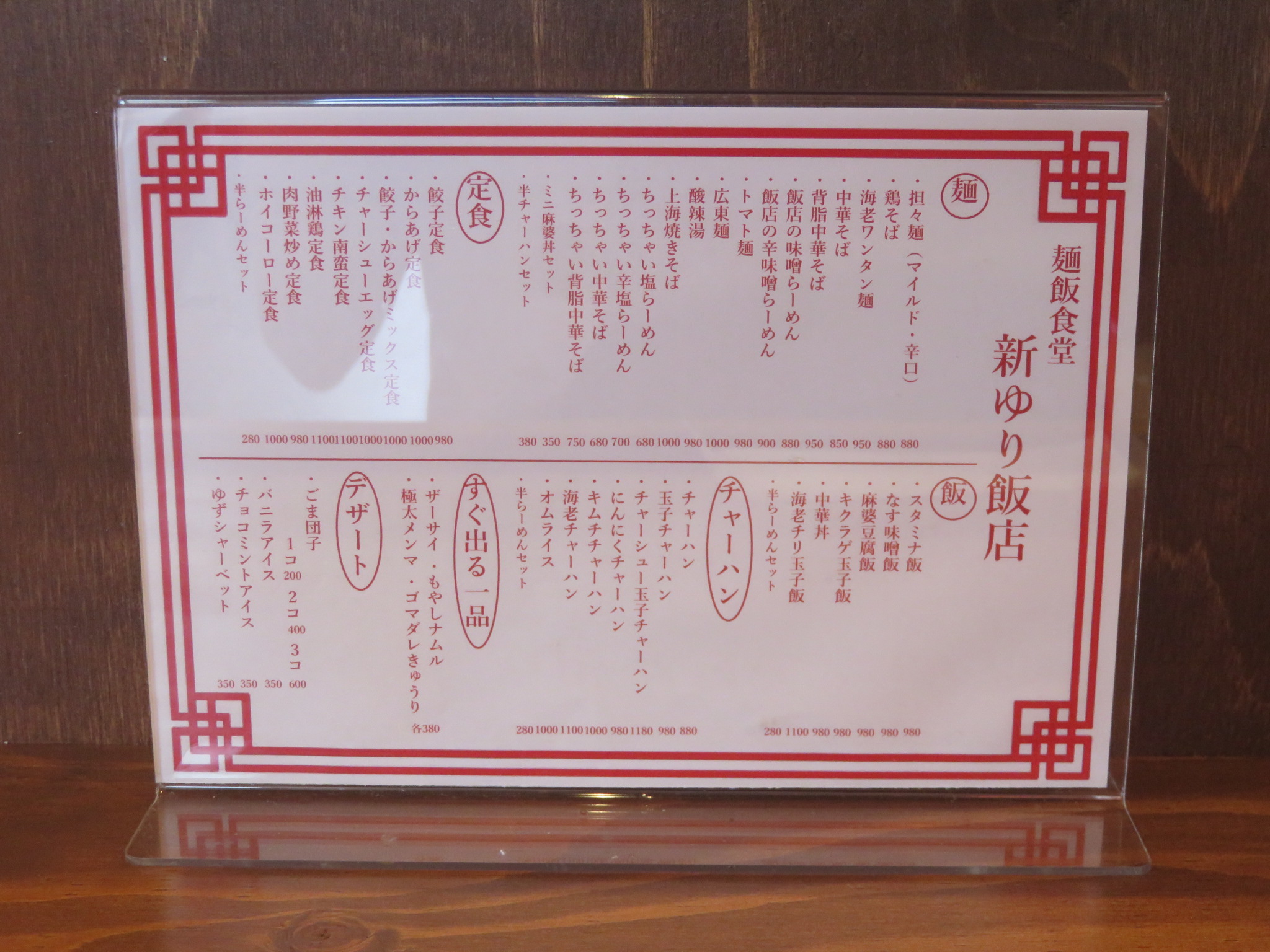 | 店名 | 麺飯食堂 新ゆり飯店 |