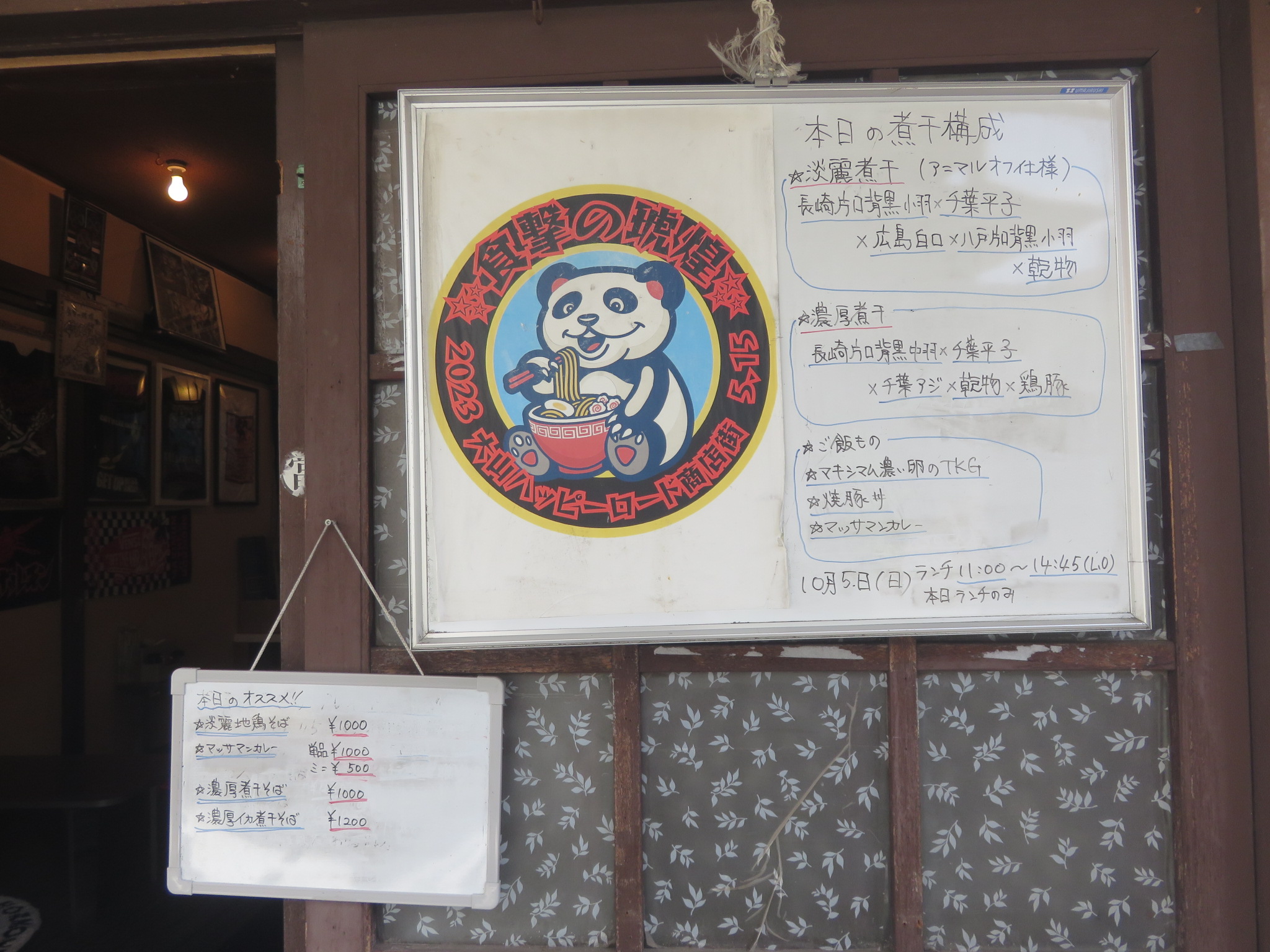 メニューは淡麗煮干そば、淡麗煮干つけそば、淡麗イカ煮干そば、煮干まぜそば、濃厚煮干そば、濃厚イカ煮干そば、淡麗地鶏そばのラインアップとなっており、味の種類が醤油、塩から選べるようです。