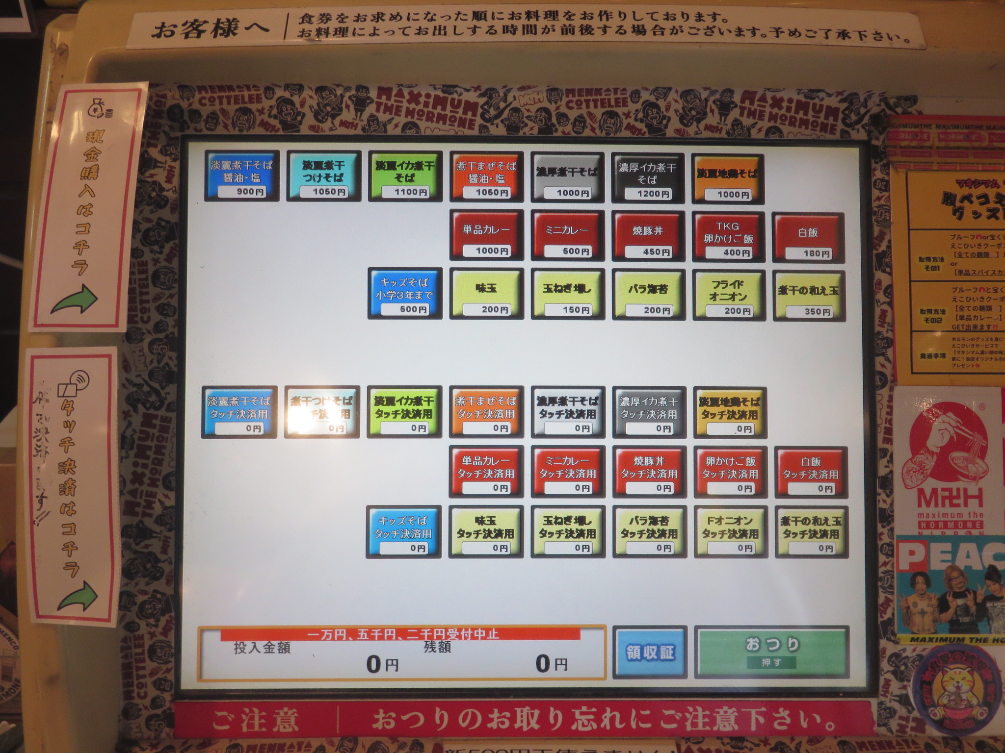 店頭にはタッチパネル形式の券売機が設置されており、先に食券を購入するシステムとなっています。