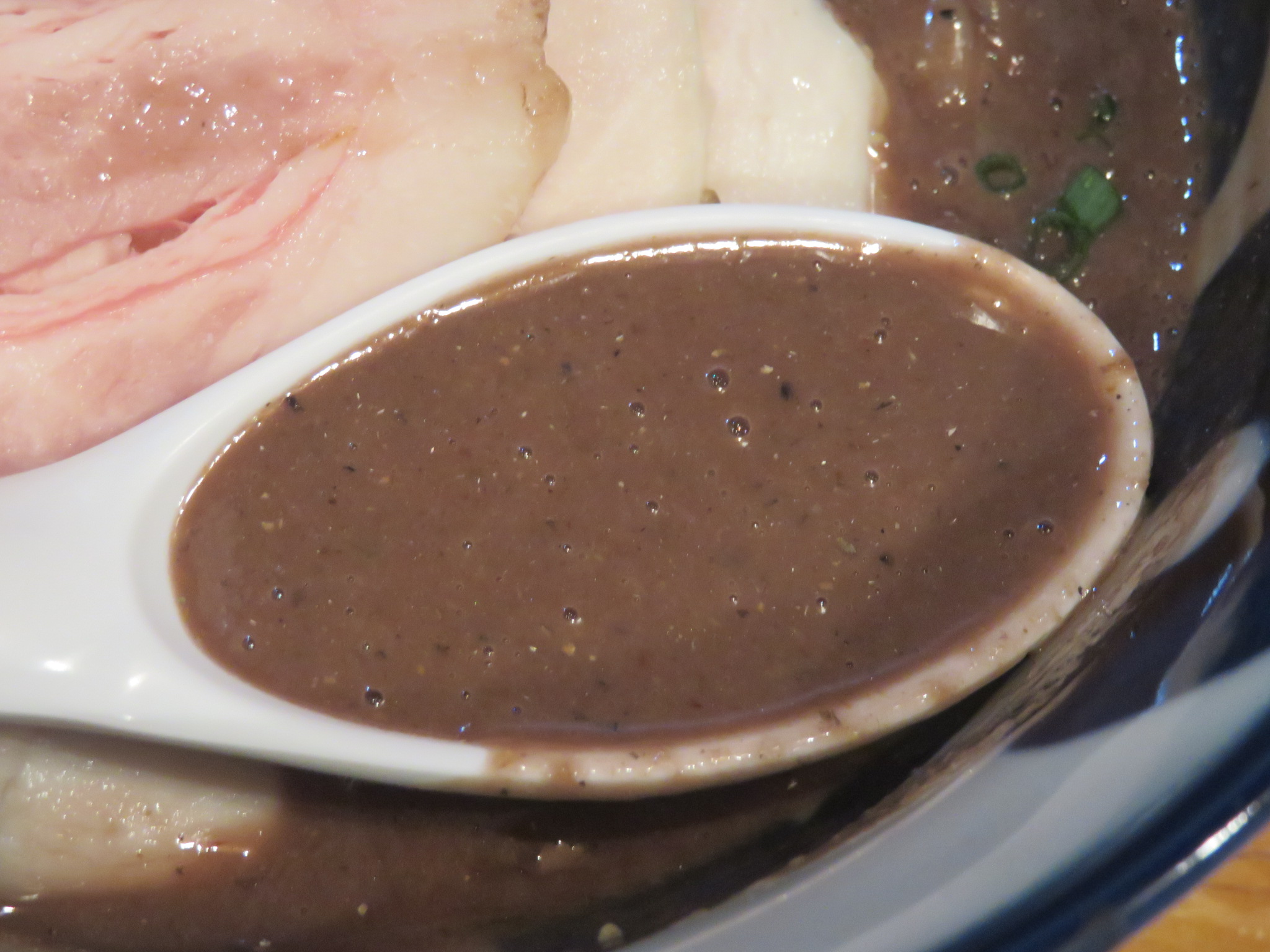 カカオ強めのチョコレートのような色合いで、かなり粘度の高いスープになっています。