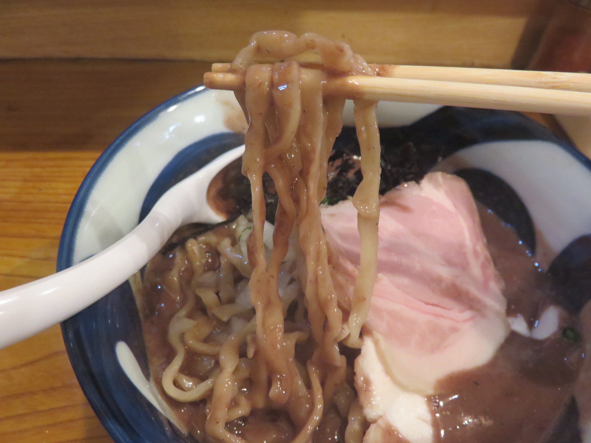 びろもち感のある麺で、濃厚なスープがどっぷりと絡み付きます。