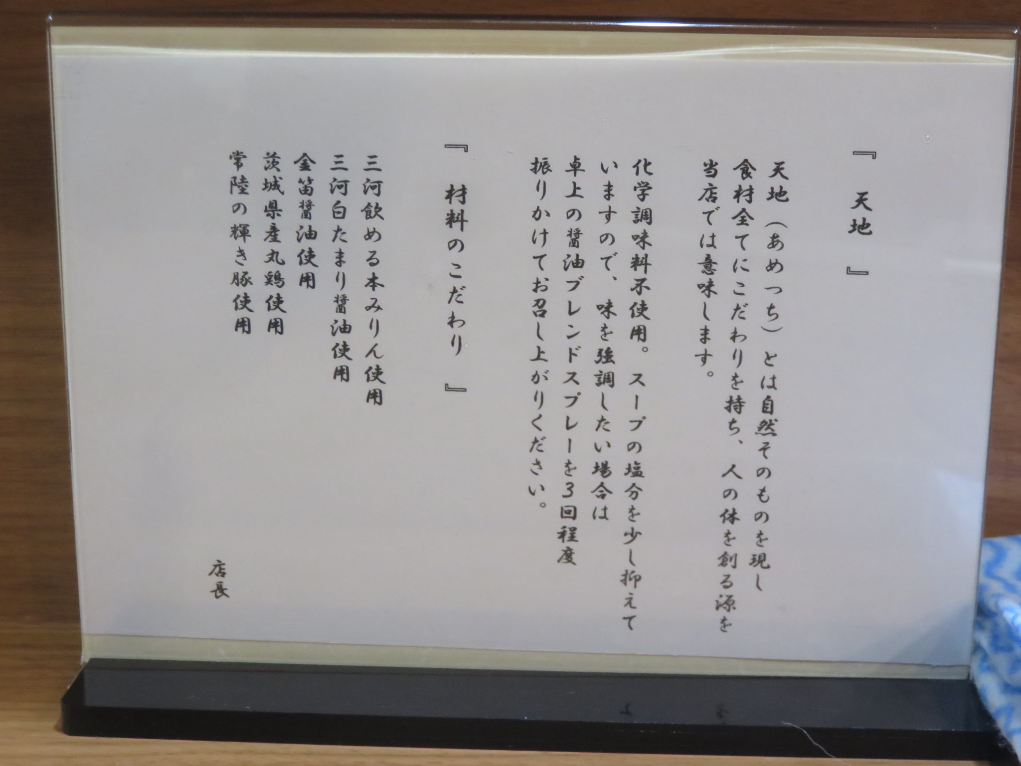 | 店名 | 天地 AME-TSUCHI |