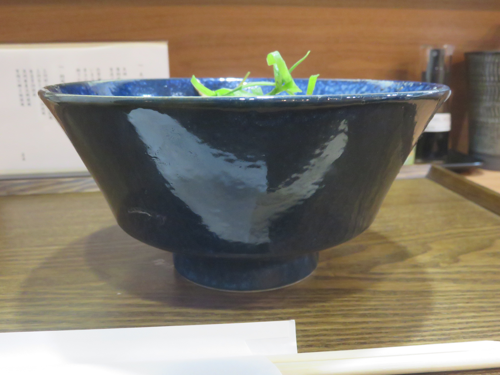 深みのある藍の高台丼でやってきました。
