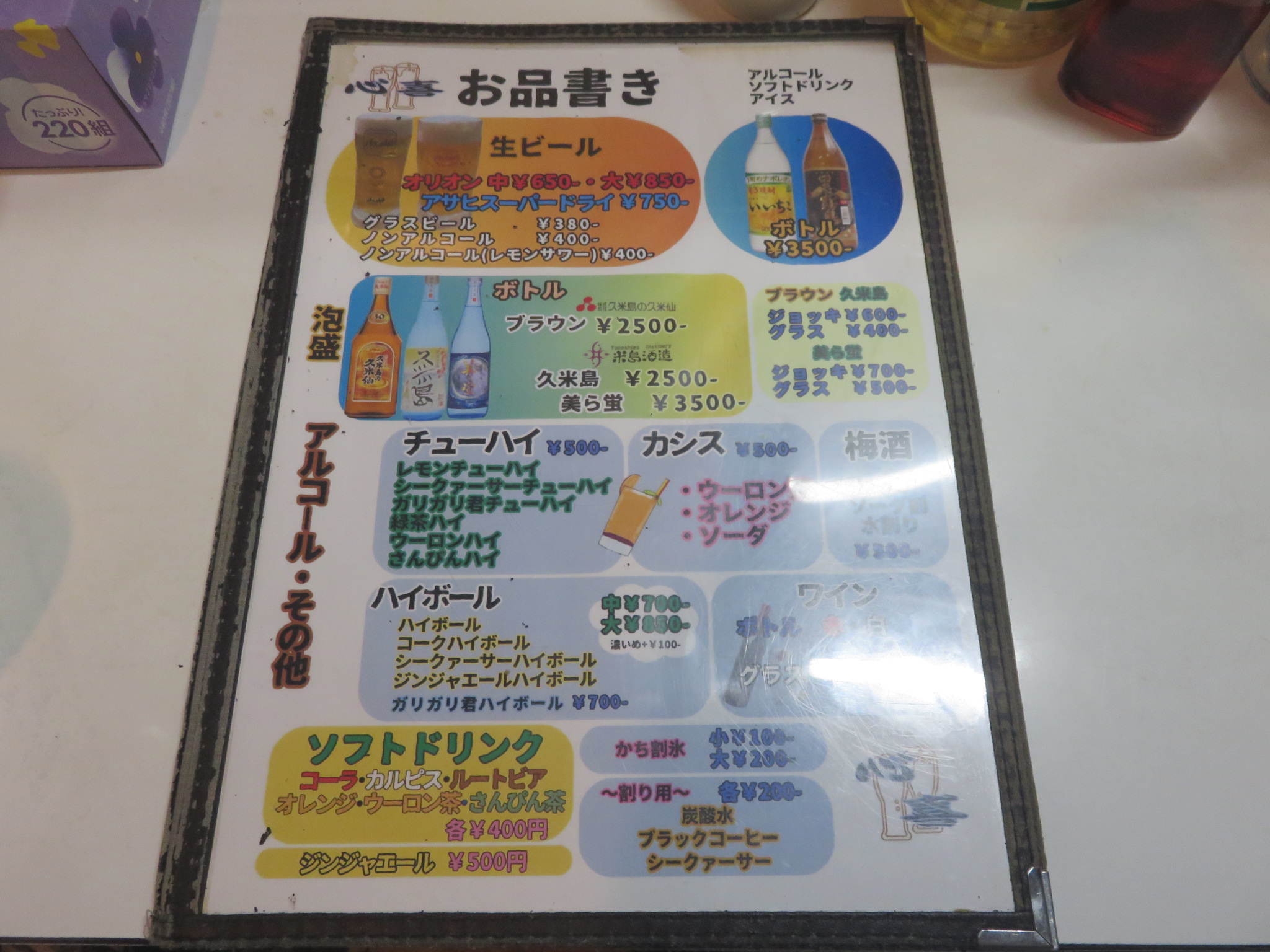 店内は飲みもできるため、沖縄の居酒屋っぽい雰囲気が漂います。