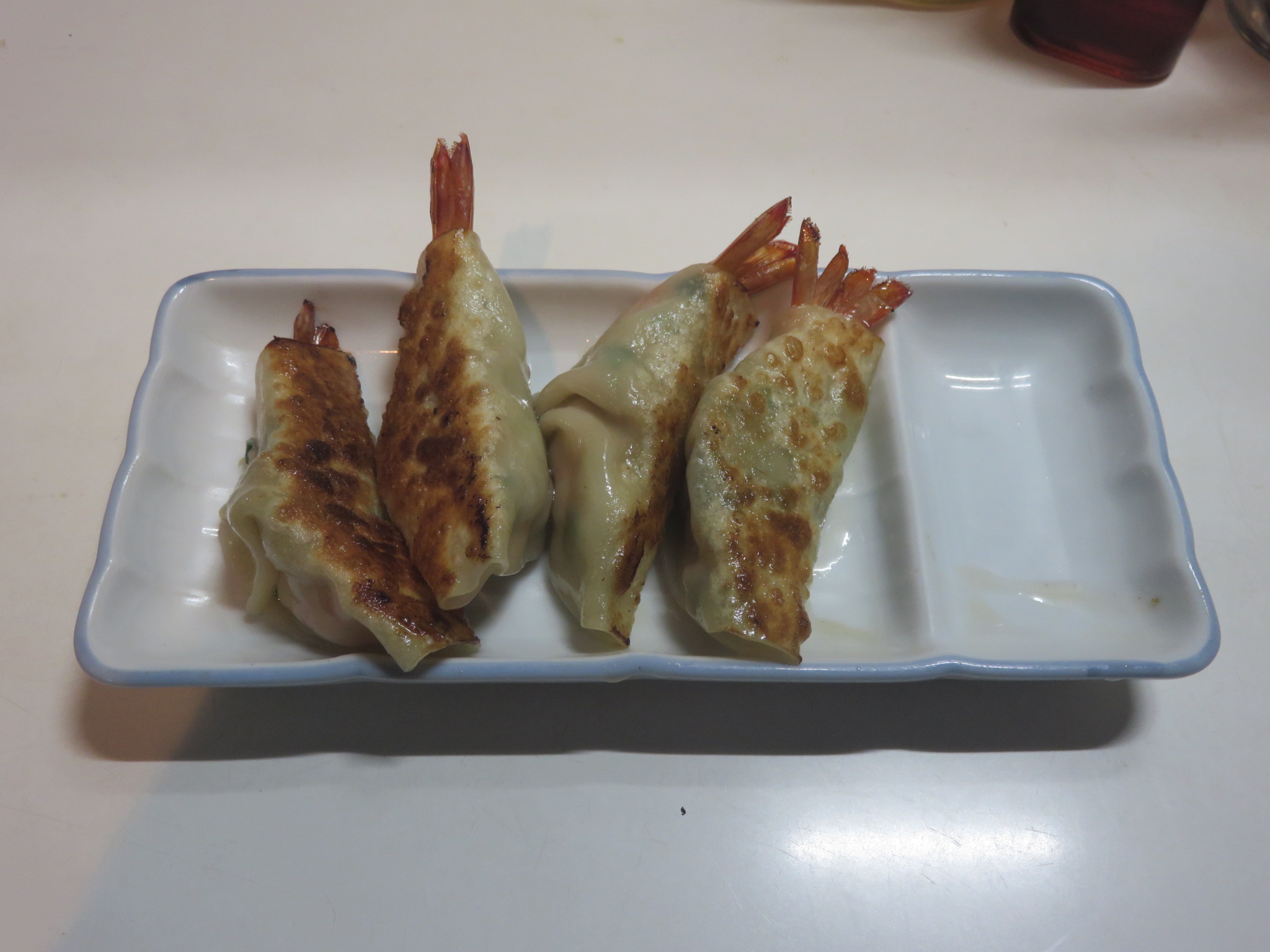 肉餃子に車海老の素揚げが挟まれた一品になります。