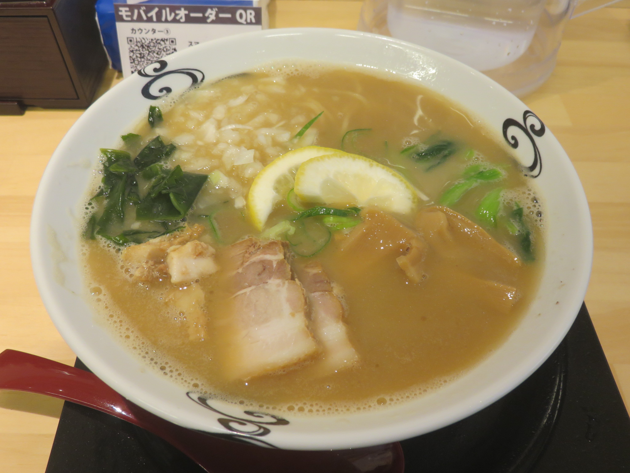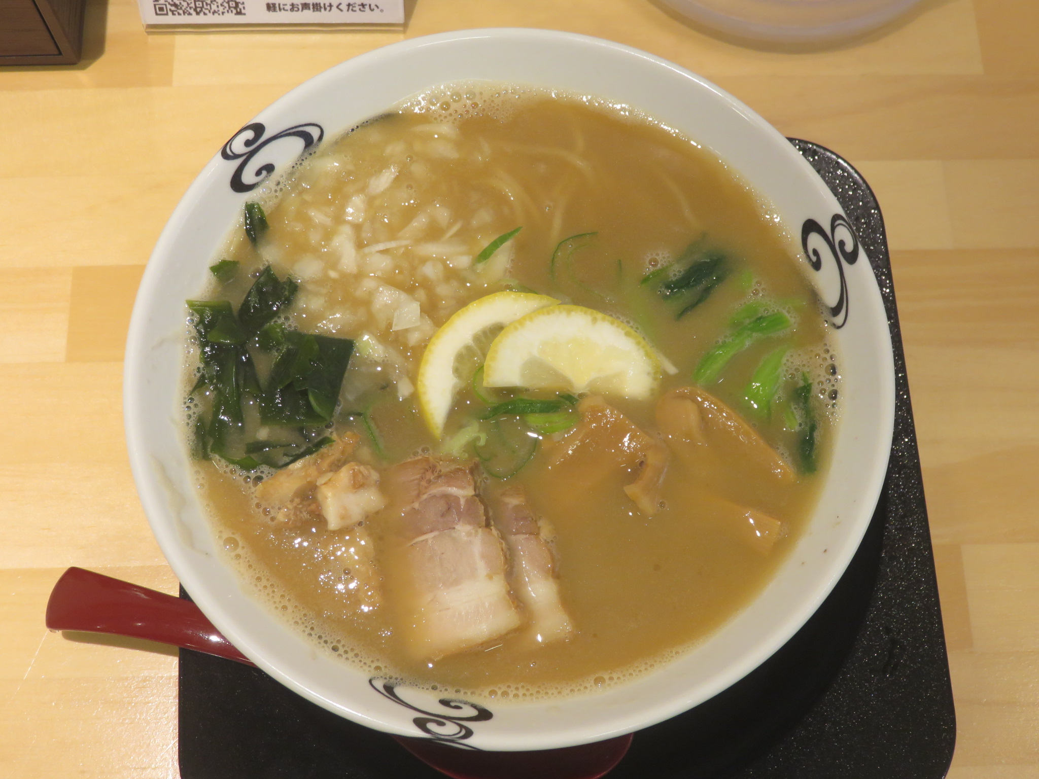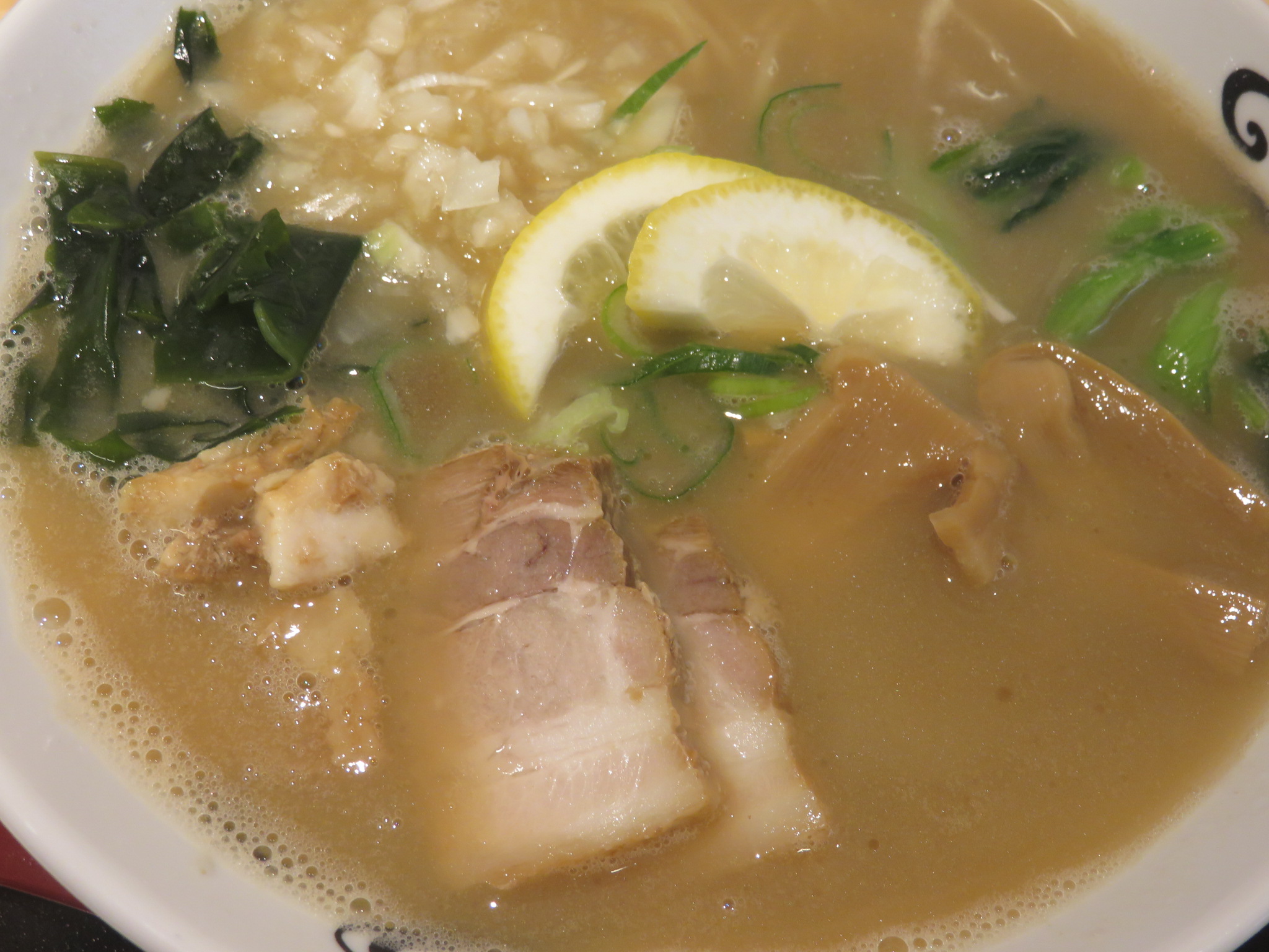 | 具 | 豚チャーシュー、メンマ、ワカメ、青菜、刻みタマネギ、刻みネギ、カットレモン |