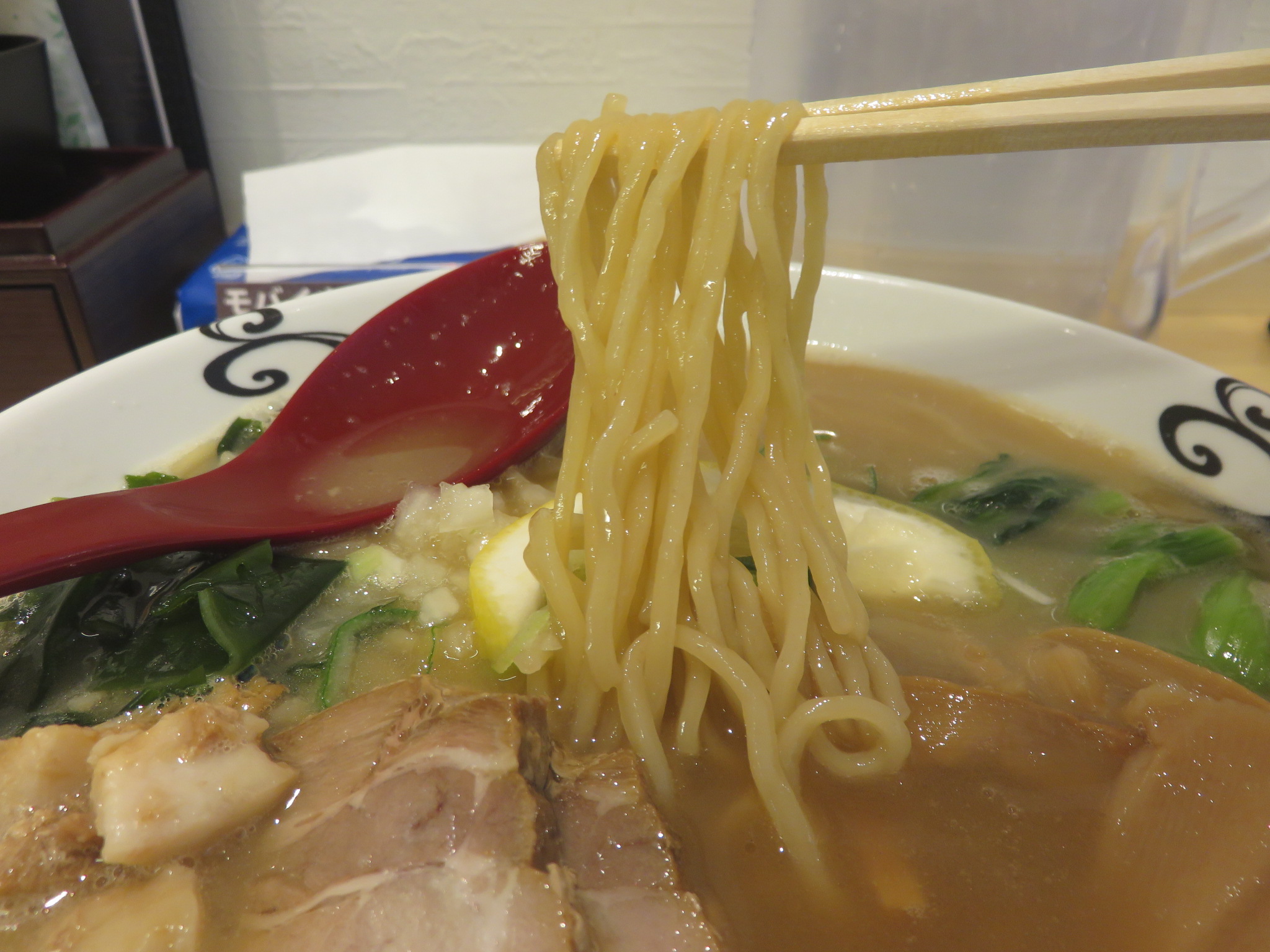 メンマは中庸なコリコリ感で、青菜、ワカメ、刻みタマネギはそれぞれ食感風味アクセントになります。