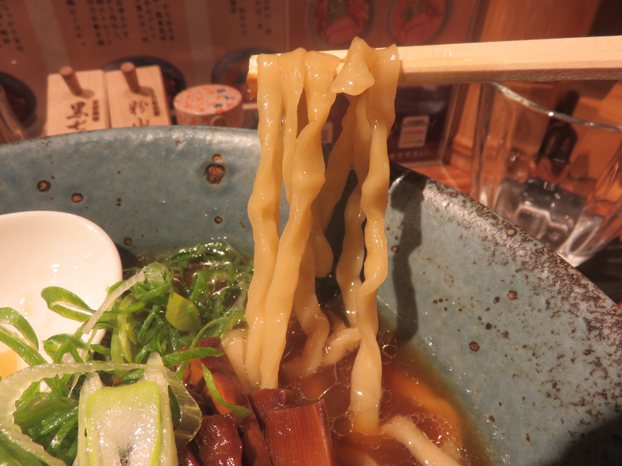 もちもち感のある麺で、多加水の心地よい食感を楽しめます。