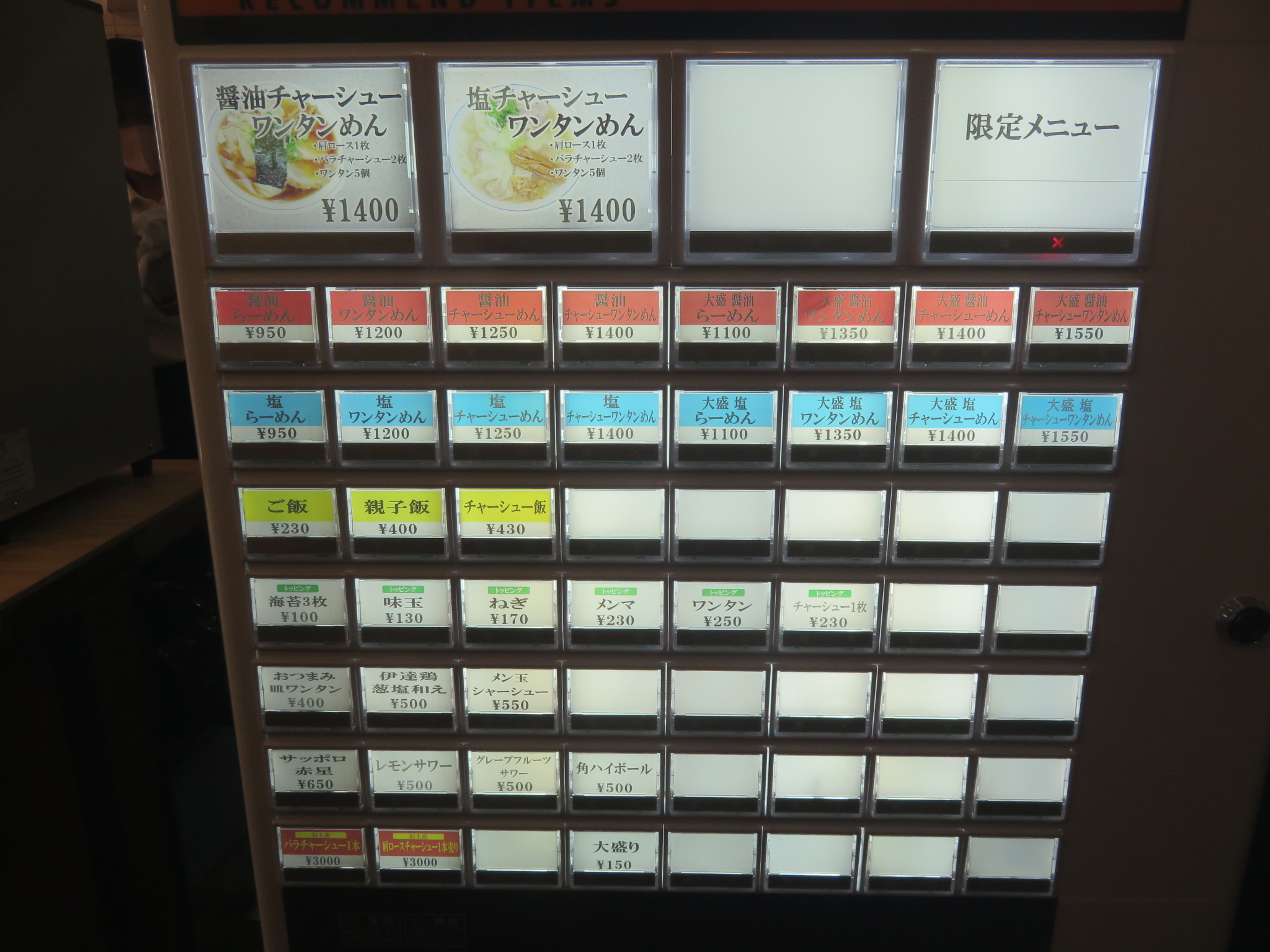 メニューは醤油らーめん、塩らーめんのツートップ体制となっており、組み合わせでチャーシューワンタン、ワンタン、チャーシューが、麺量が大盛から選べるようです。