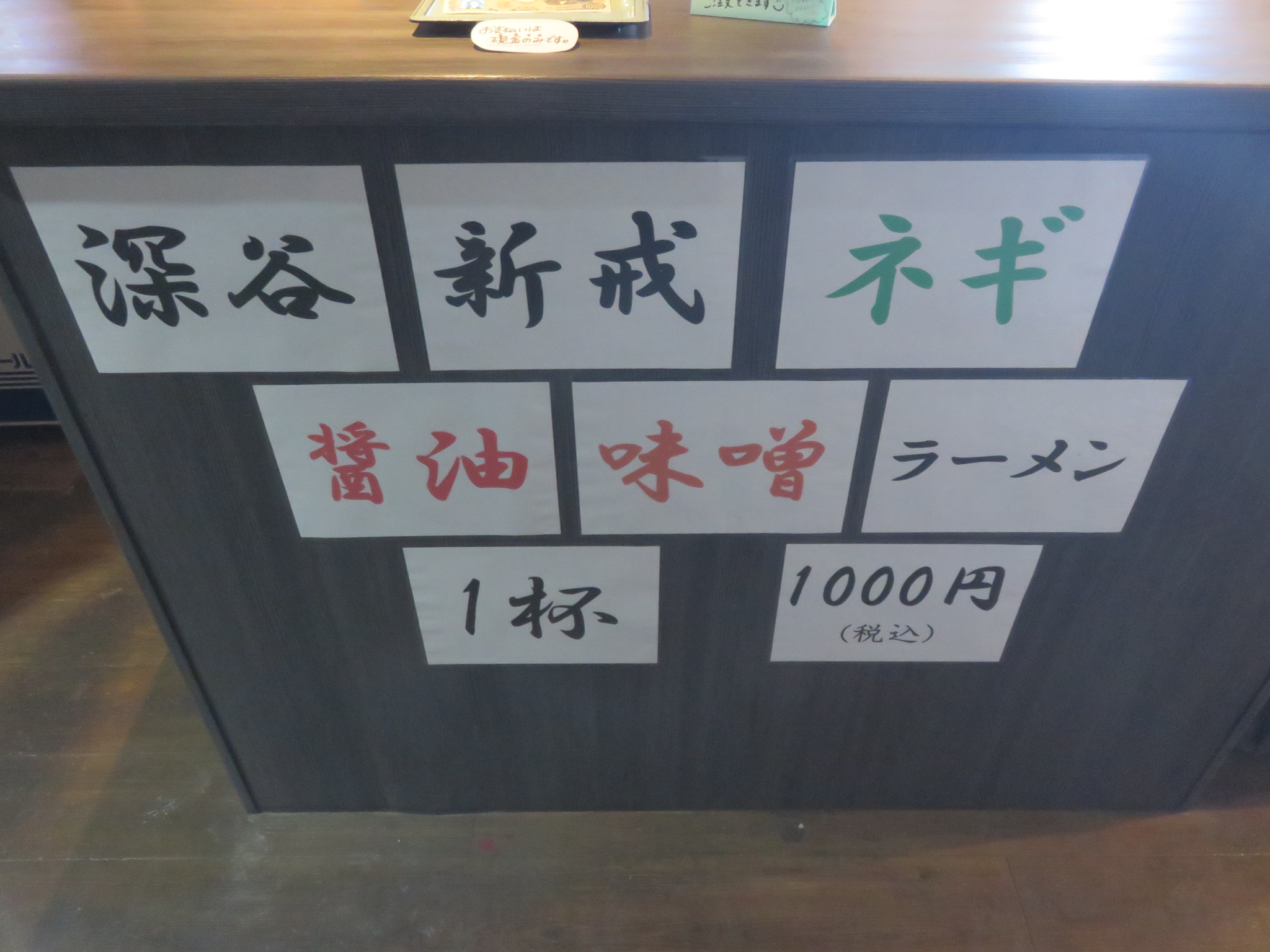 メニューは深谷新戒ネギ醤油ラーメン、深谷新戒ネギ味噌ラーメンのツートップ体制となっています。