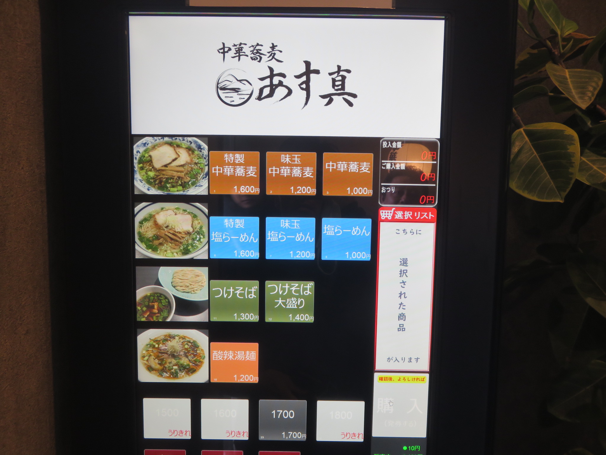 店内にはタッチパネル形式の券売機が設置されており、先に食券を購入するシステムとなっています。