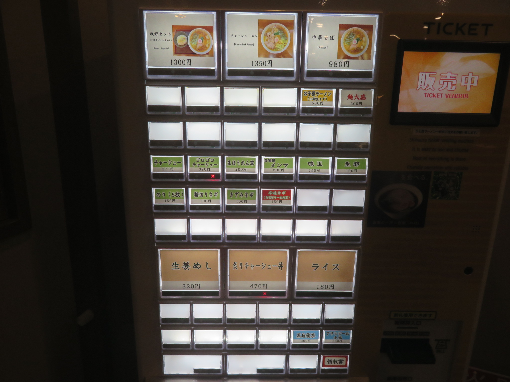 | 料金 | 980yen:先会計:券売機:現金決済 |