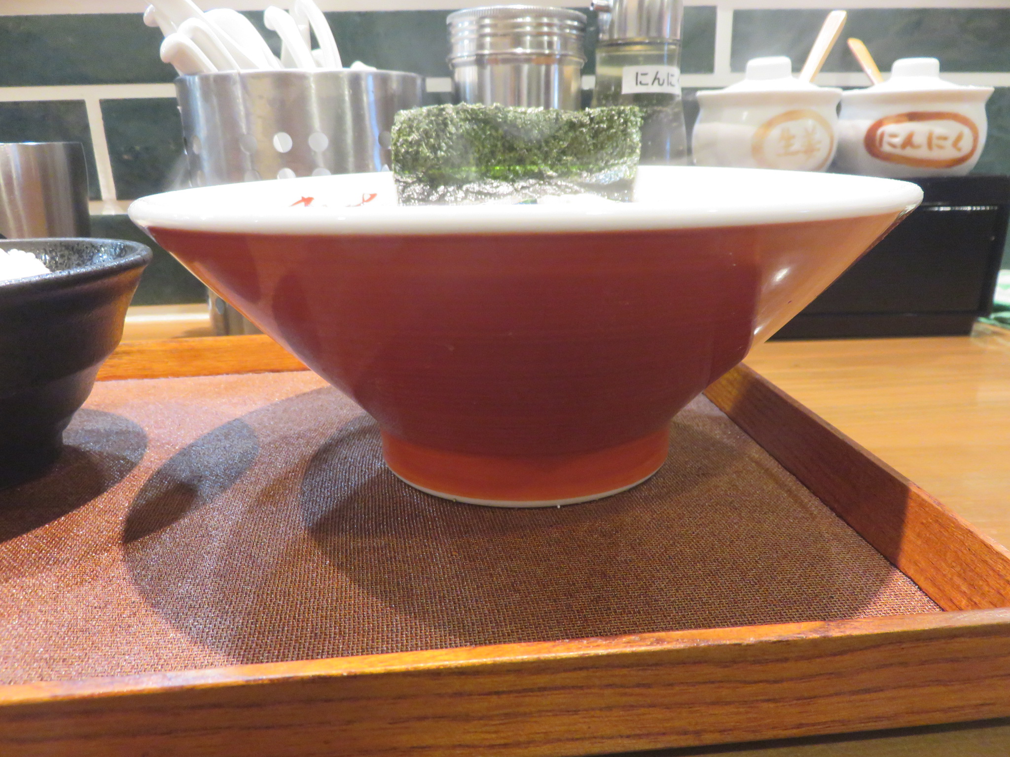 | 具 | 豚チャーシュー、メンマ、ナルト、ほうれん草、刻みネギ、海苔 |