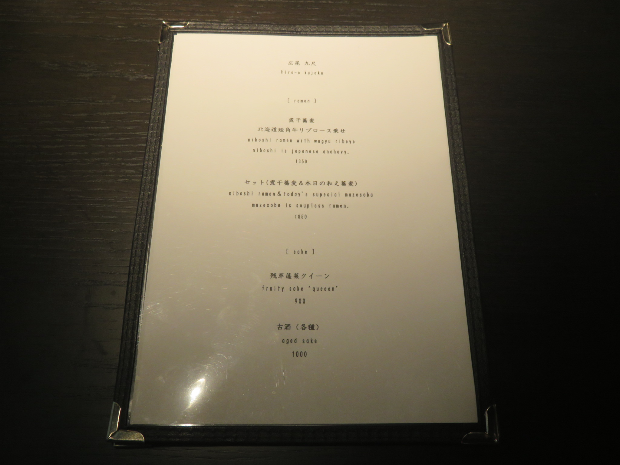 ここは迷わず煮干蕎麦 北海道短角牛リブロース乗せをお願いします。