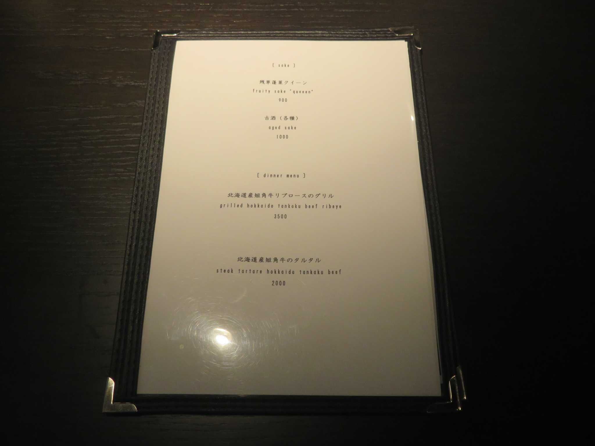 着席するとカウンターに置かれたメニューを確認します。