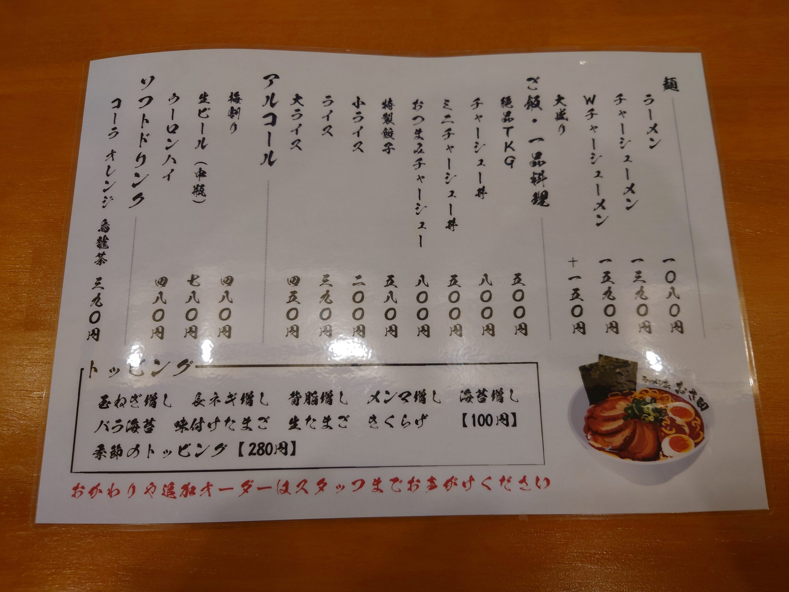 | メニュー | ラーメン |