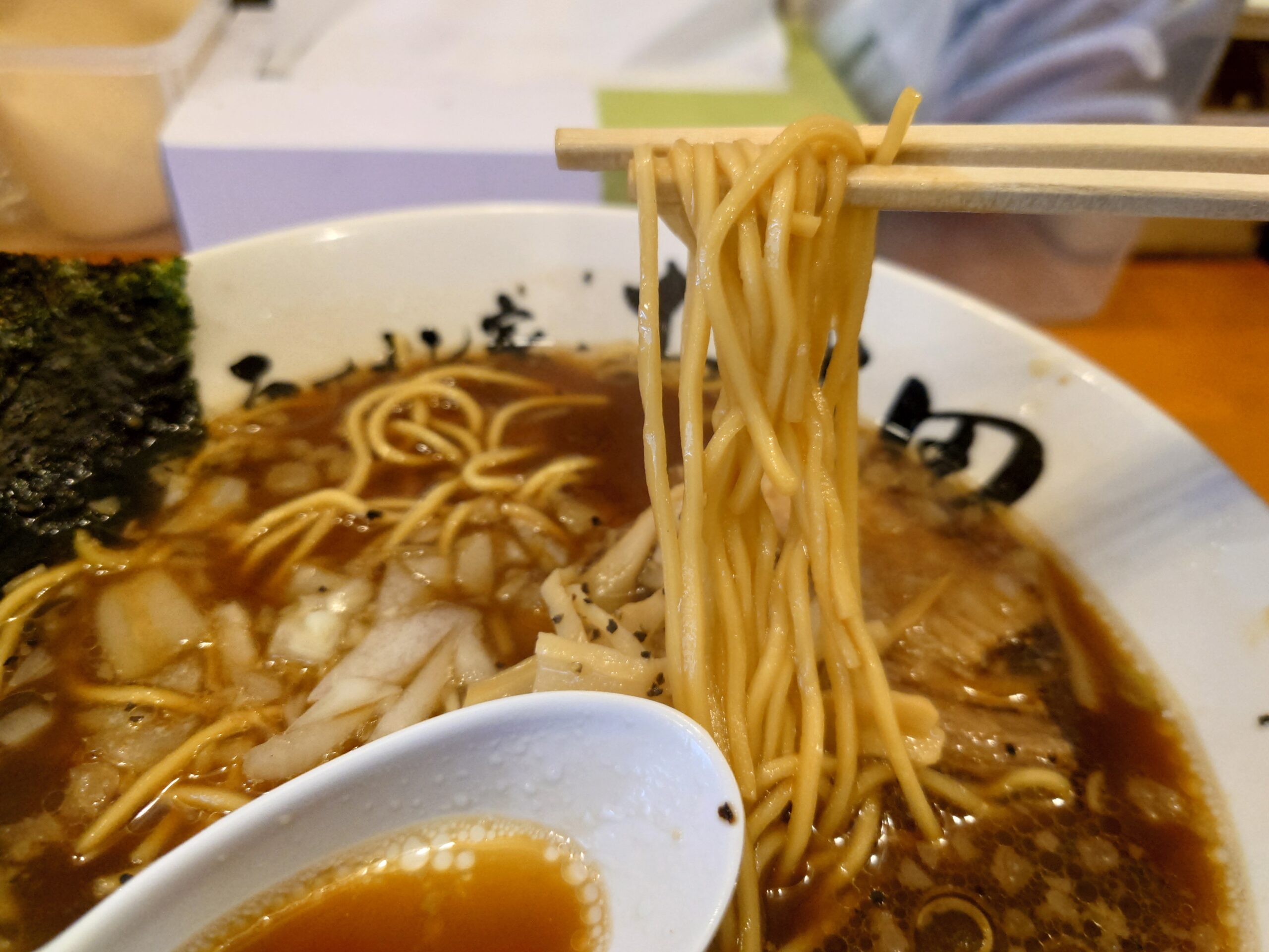 するすこ感のある麺で、加水低めのさくりとしたすすり心地となっています。