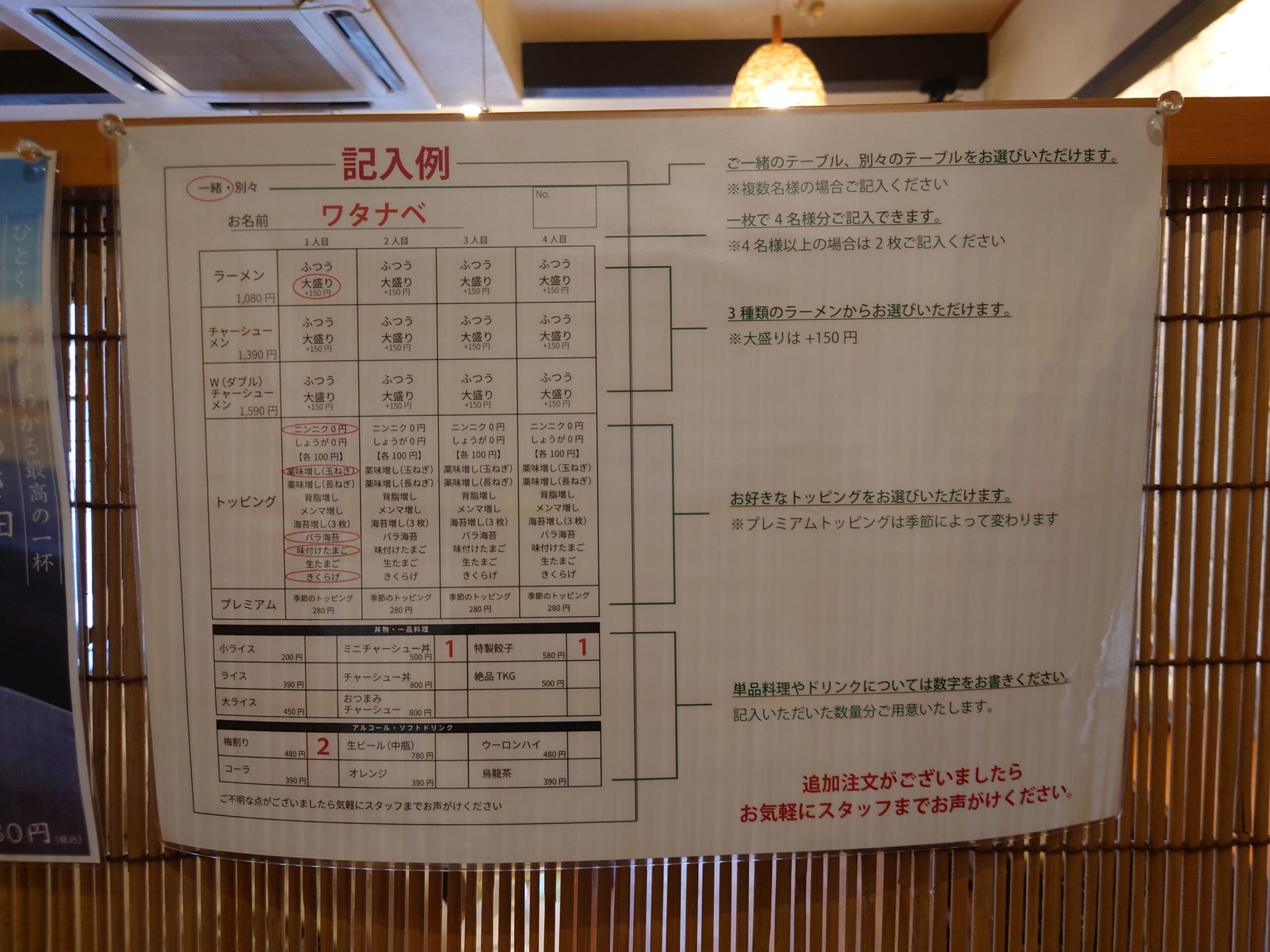ここはあまり悩まず、基本のラーメンを丸で囲みます。