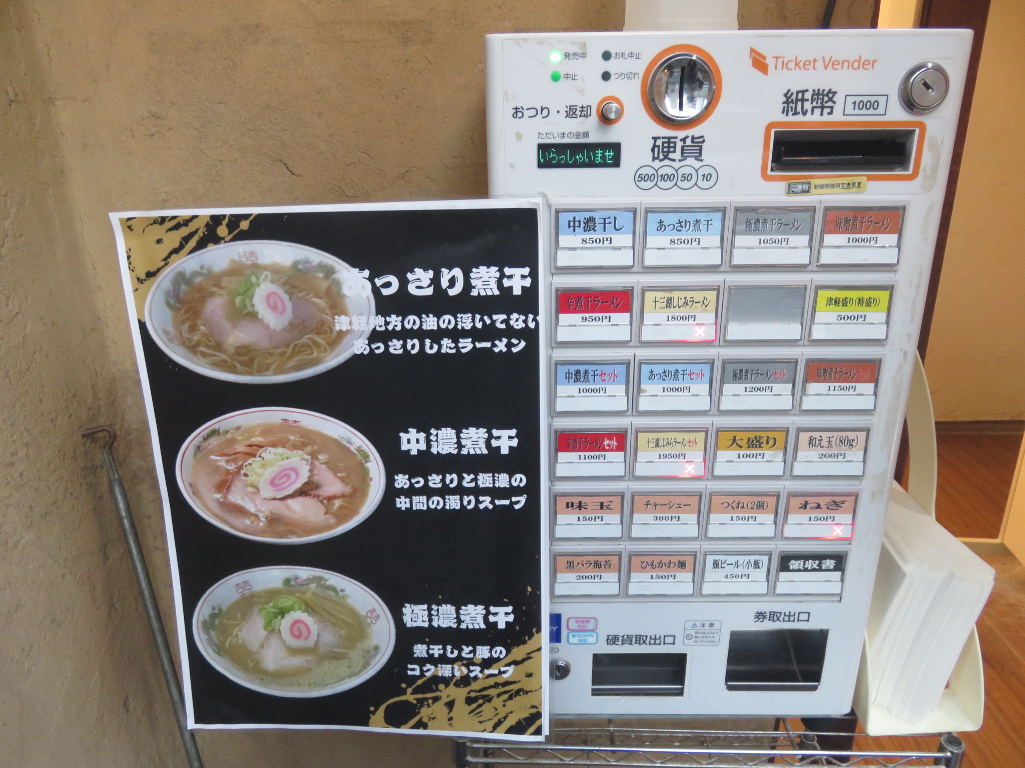 店頭には券売機が設置されており、先に食券を購入するシステムとなっています。