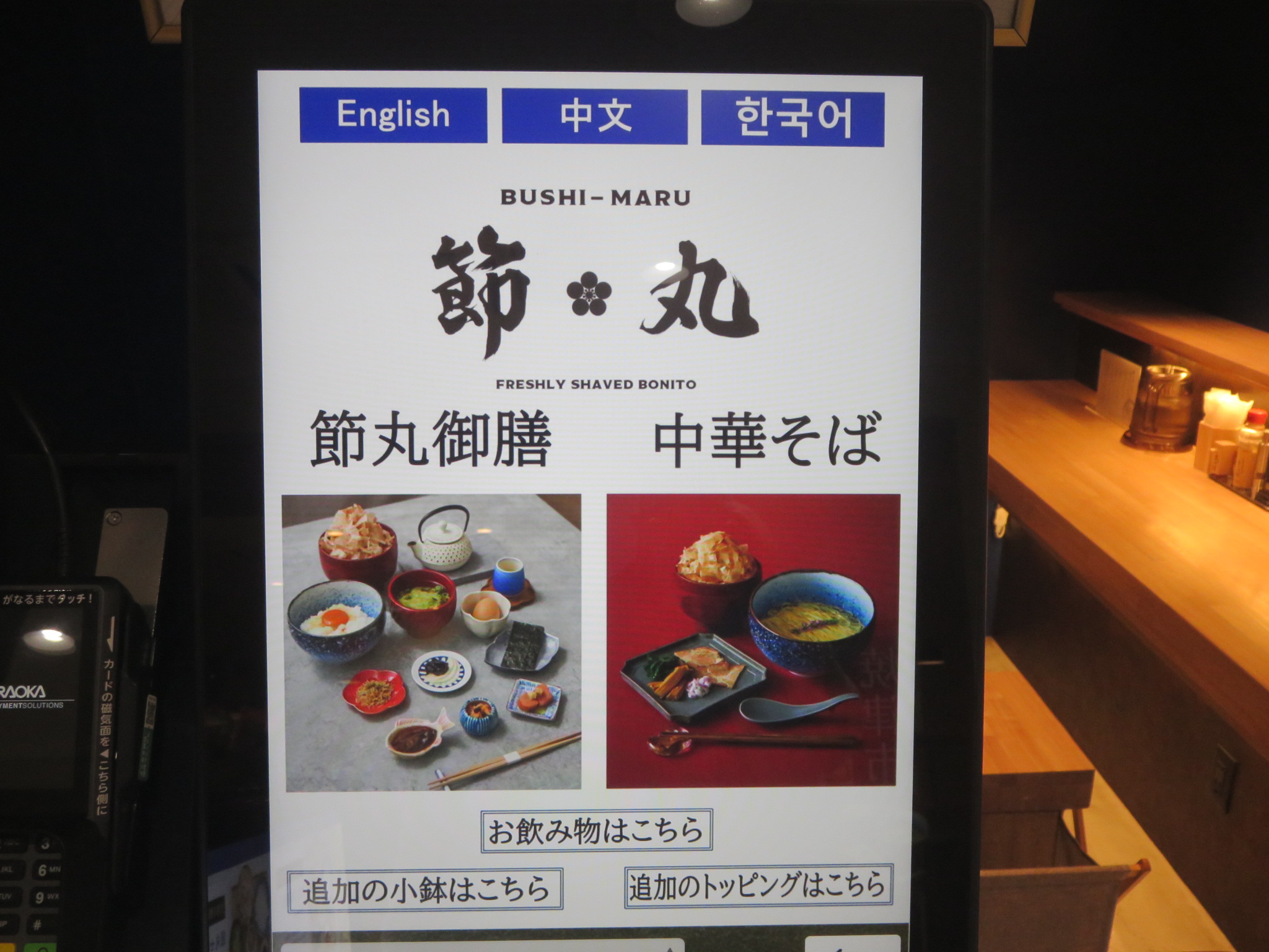 店頭にはタッチパネル形式の券売機が設置されており、先に食券を購入するシステムとなっています。