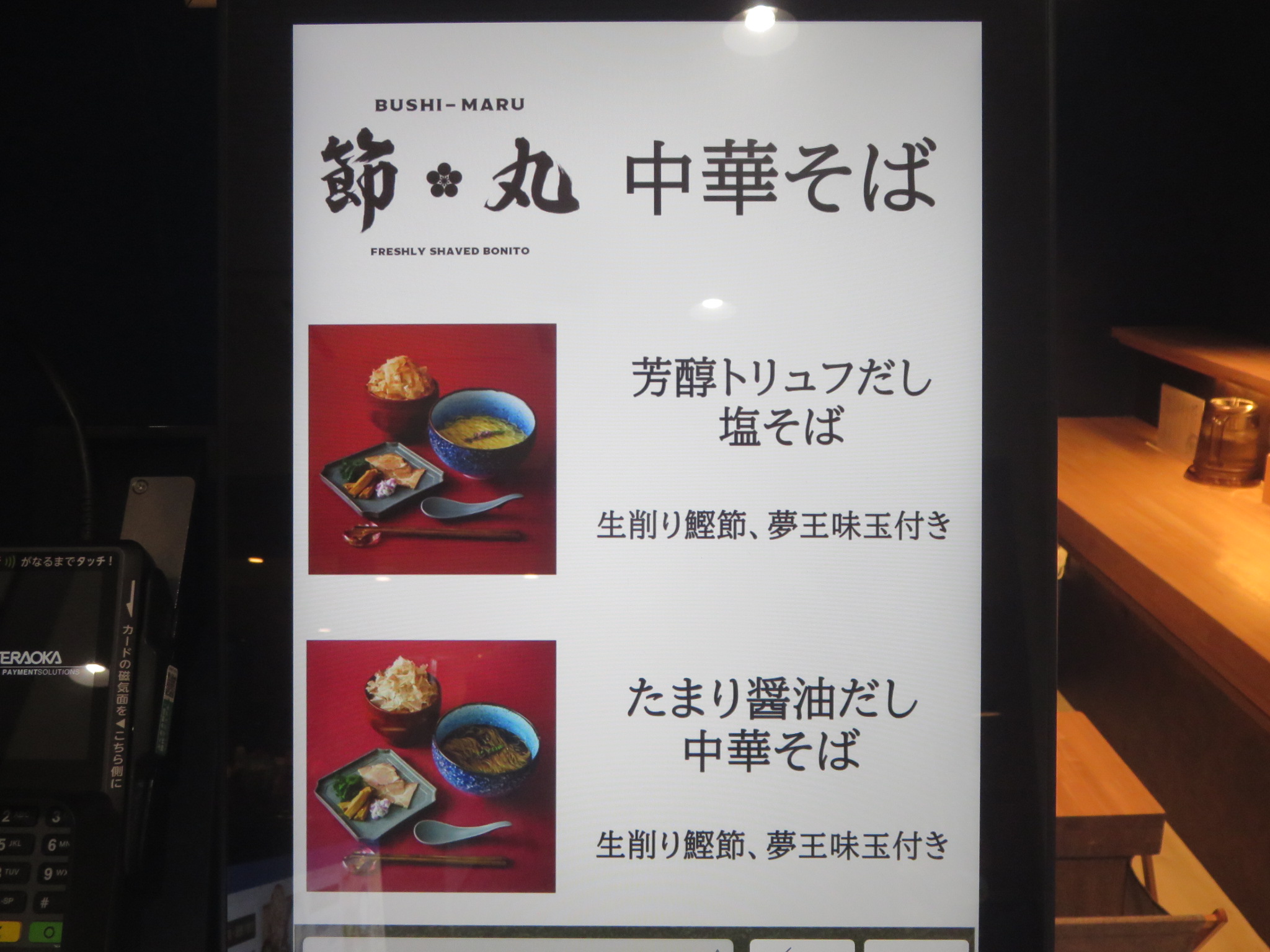 メニューは芳醇トリュフだし塩そば、たまり醤油中華そばのツートップ体制となっており、組み合わせでチャーシューが選べるようです。