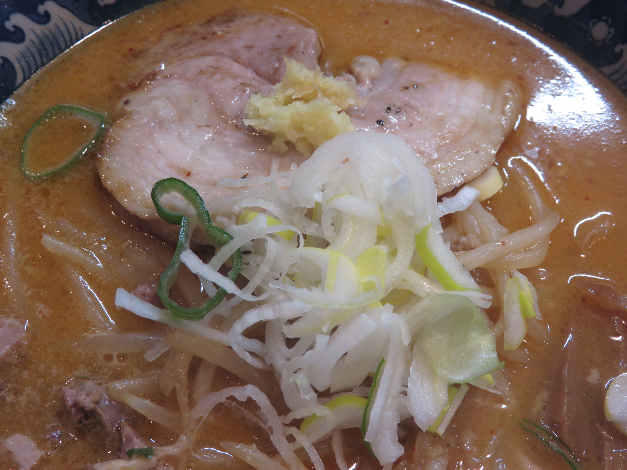 | 具 | 豚チャーシュー、ひき肉、メンマ、モヤシ、刻みネギ、おろし生姜 |