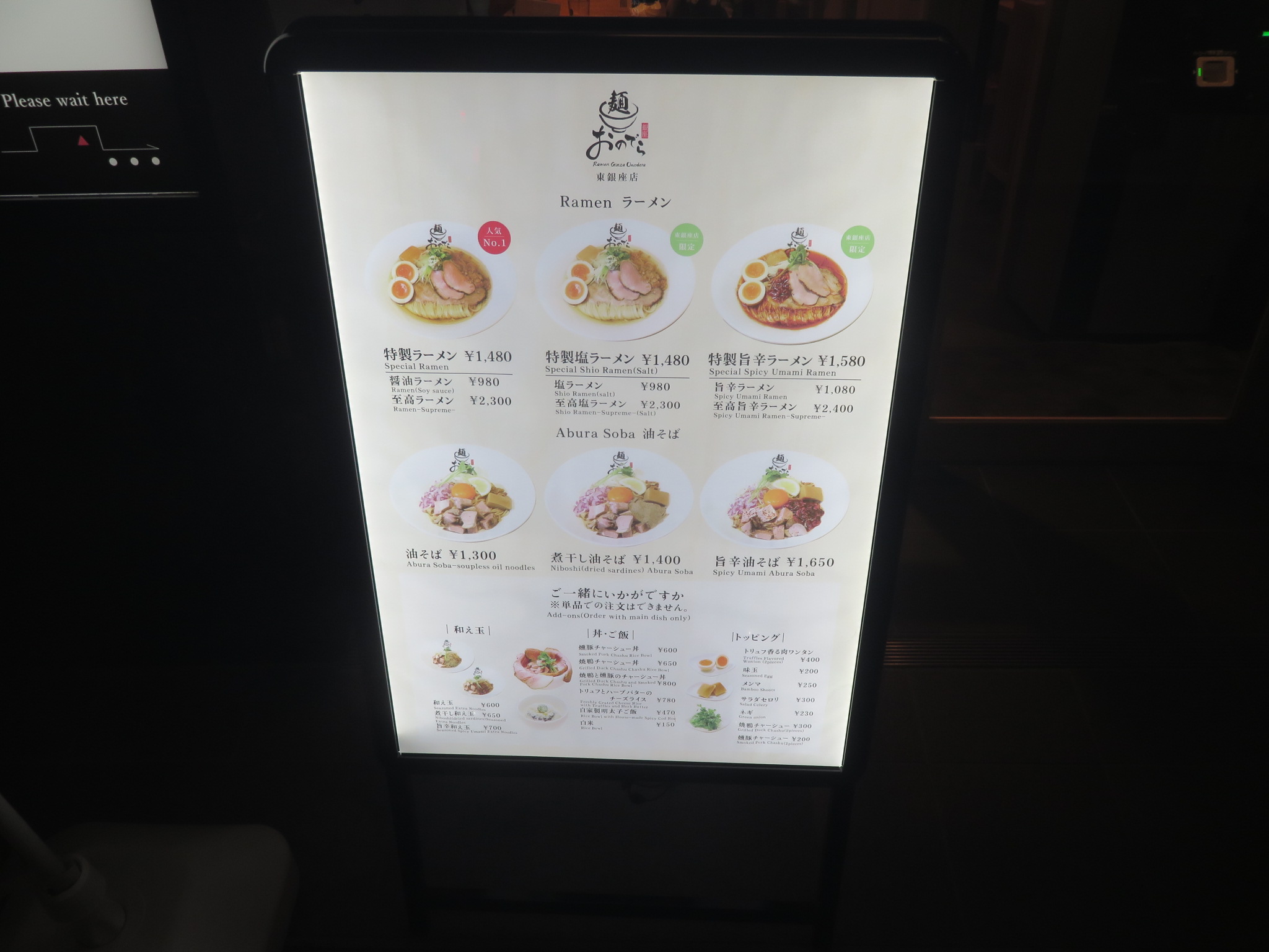 表参道の麺 銀座おのでらの2号店が東銀座にオープン。