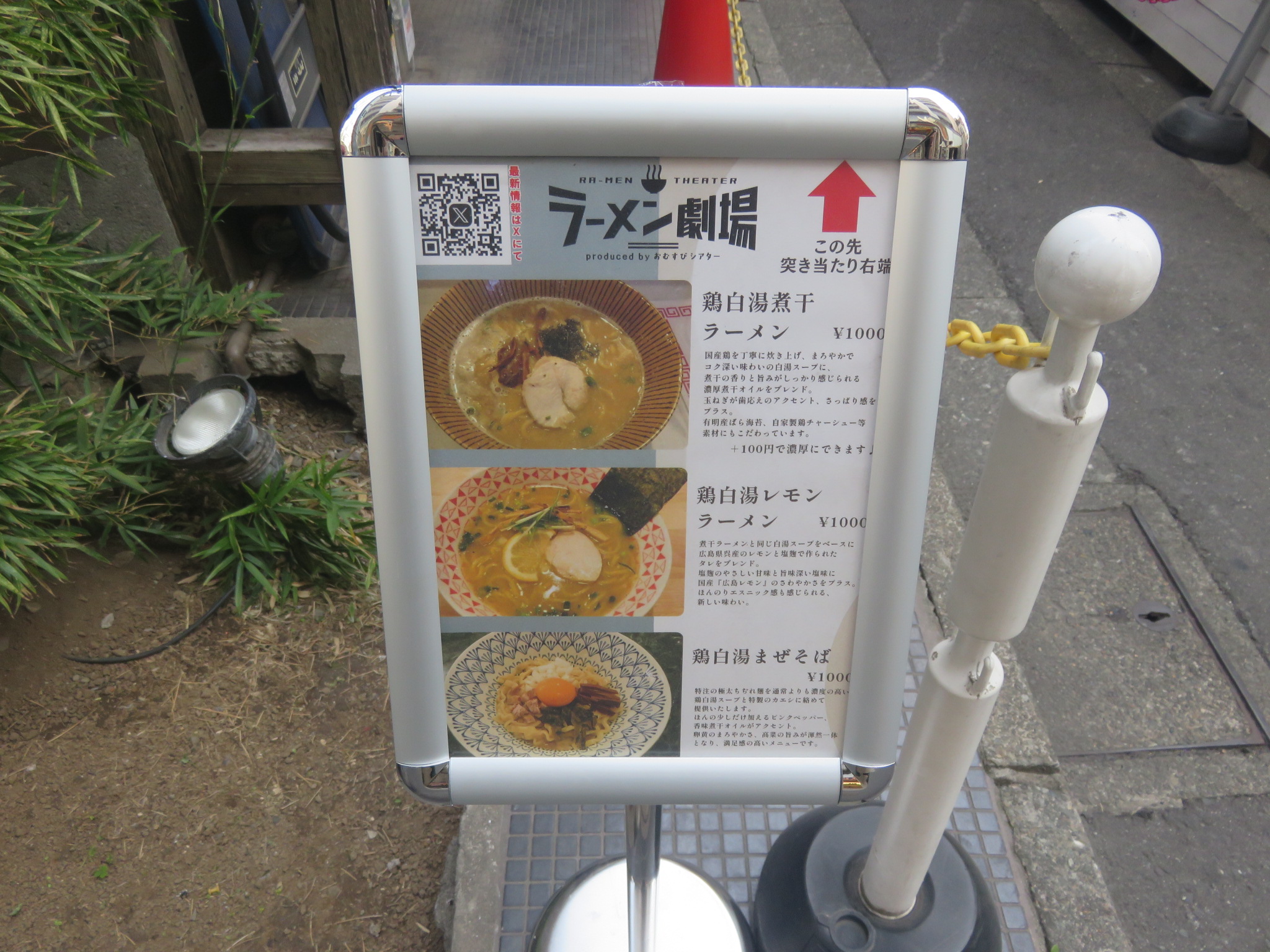 メニューは鶏白湯煮干ラーメン、鶏白湯レモンラーメン、鶏白湯まぜそばのラインアップとなっています。