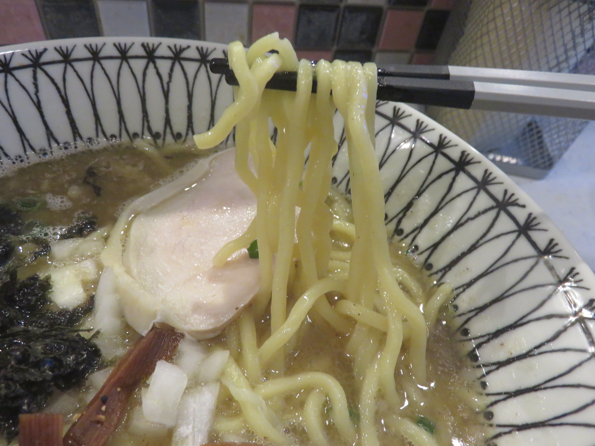 とろっと鶏白湯の濃い味わいに、しっかりと煮干しが合わさってきます。