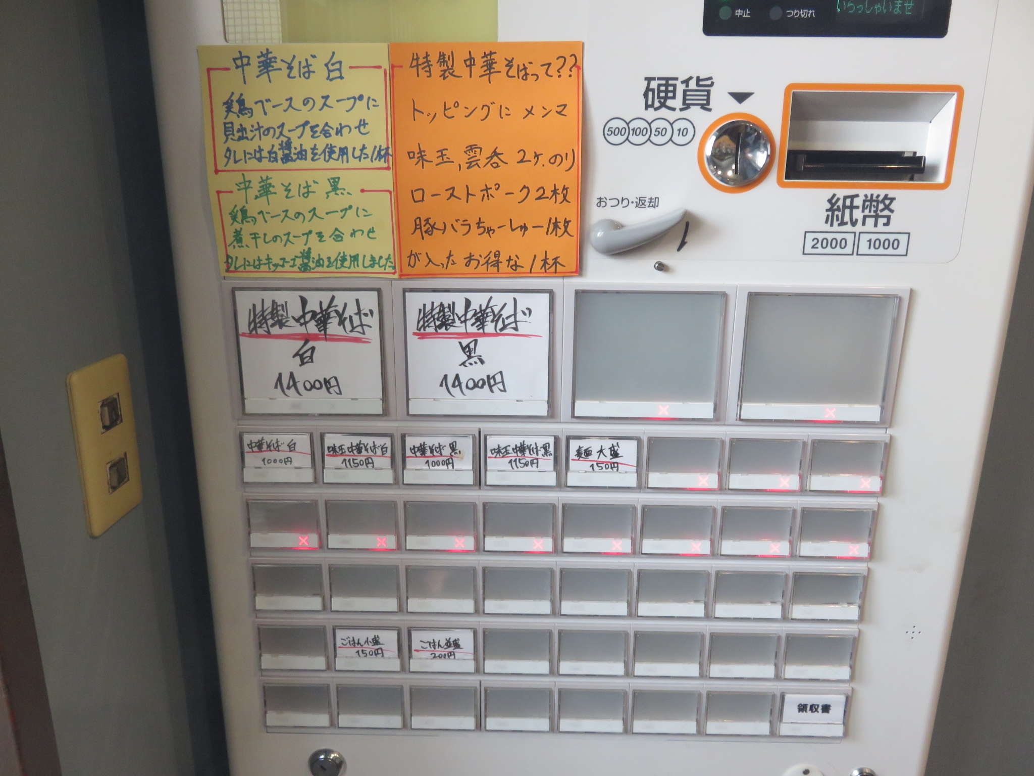 | 料金 | 1,000yen:先会計:券売機:現金決済 |