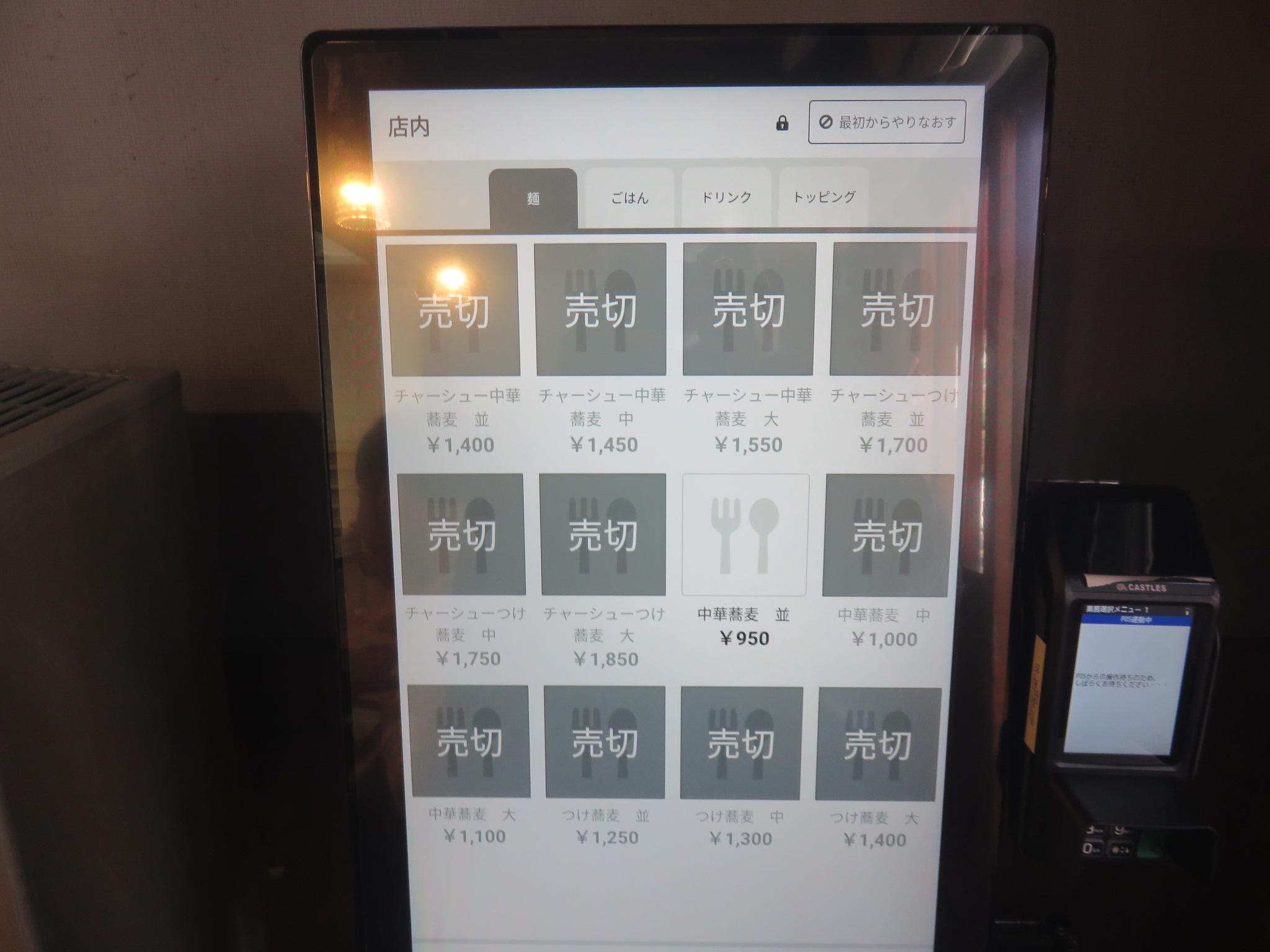 店内にはタッチパネル形式の券売機が設置されており、先に食券を購入するシステムとなっています。