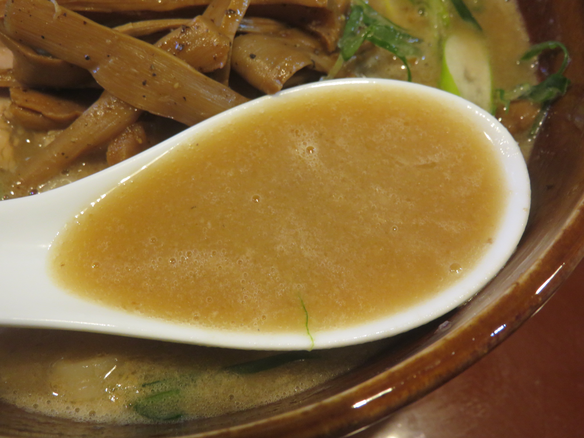 ファーストアタックは魚介が香る、ぽってり濃度のあるスープとなっています。