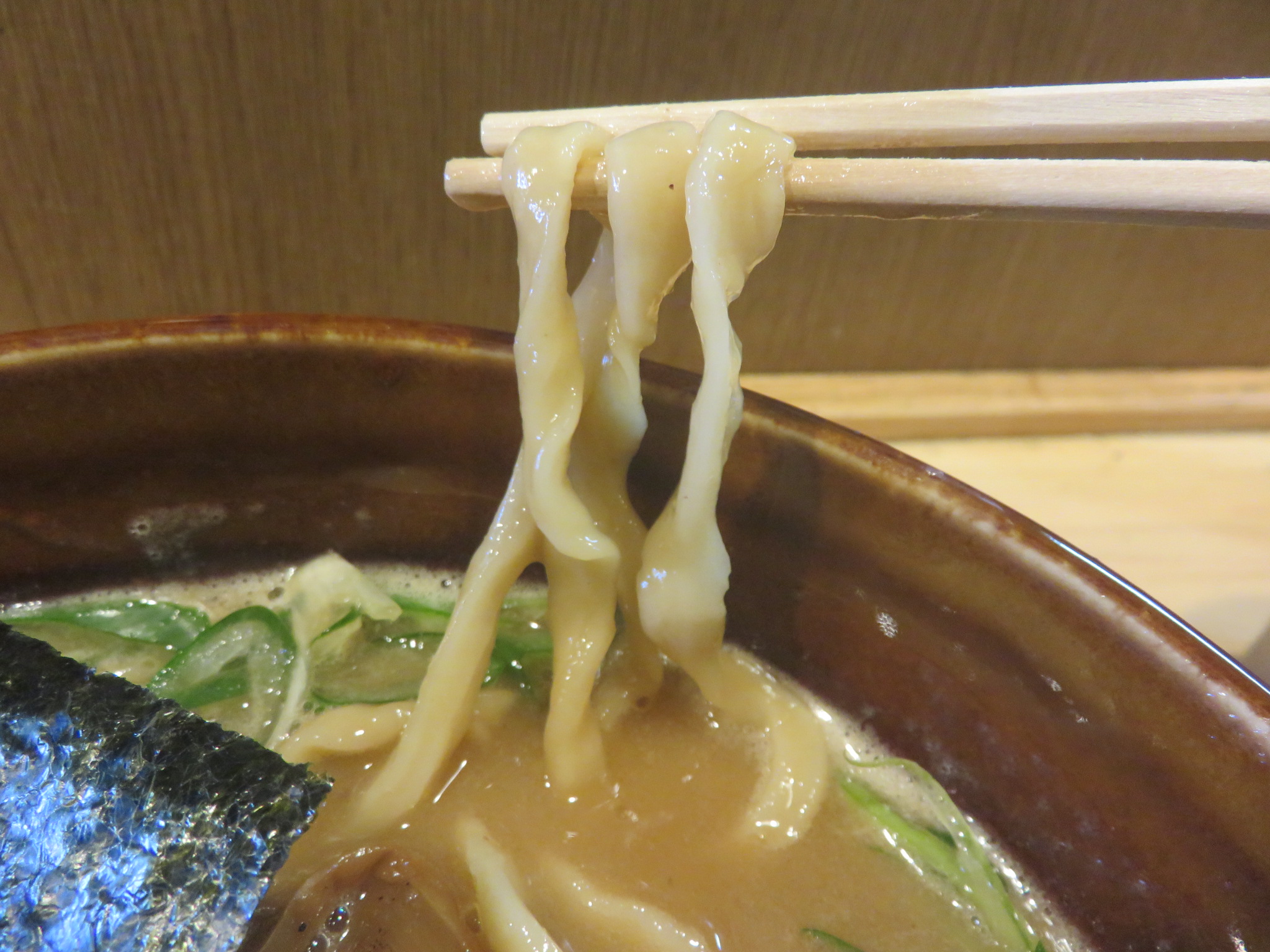 旨インパクトのある麺を楽しめる一杯でした。