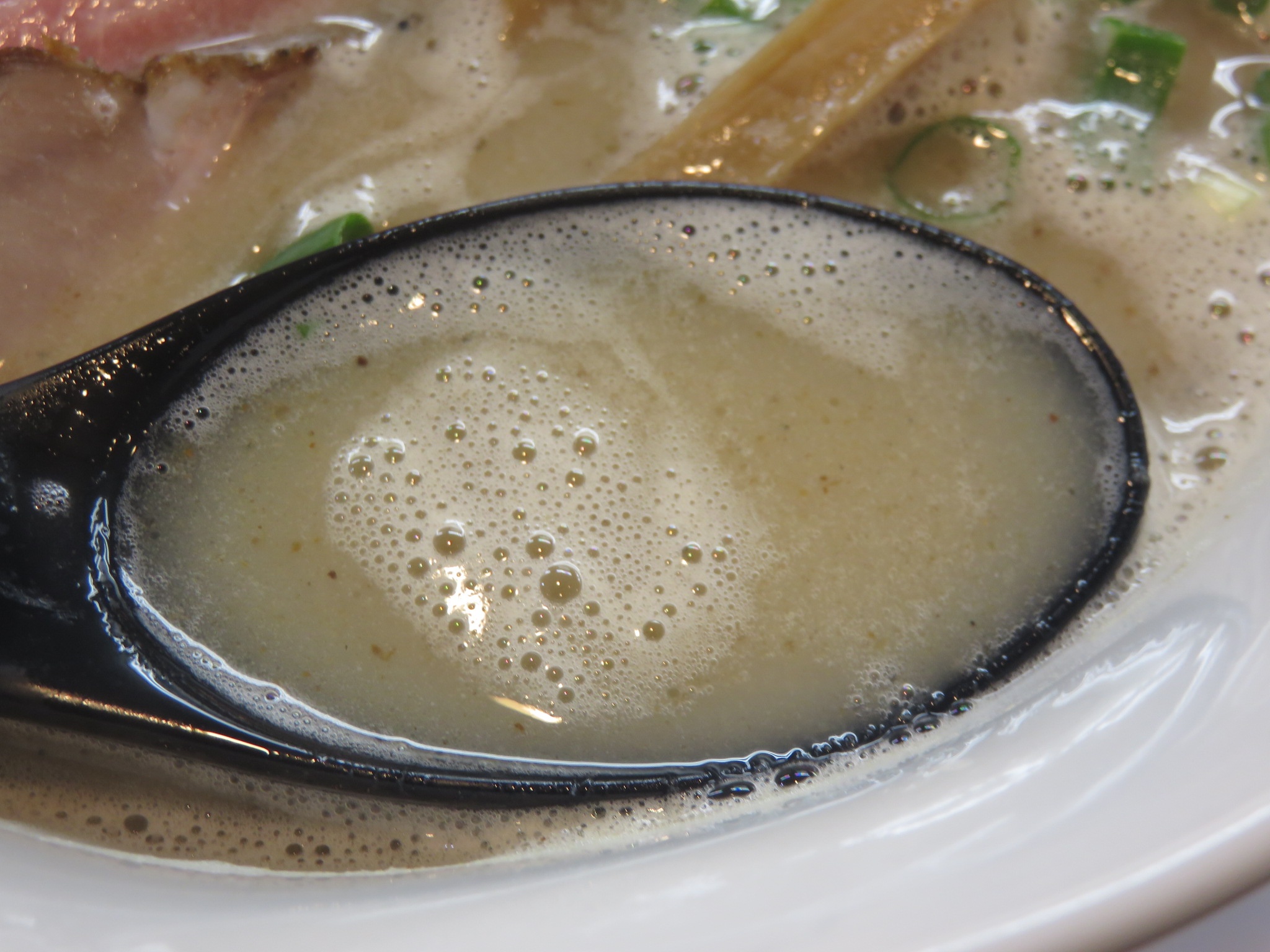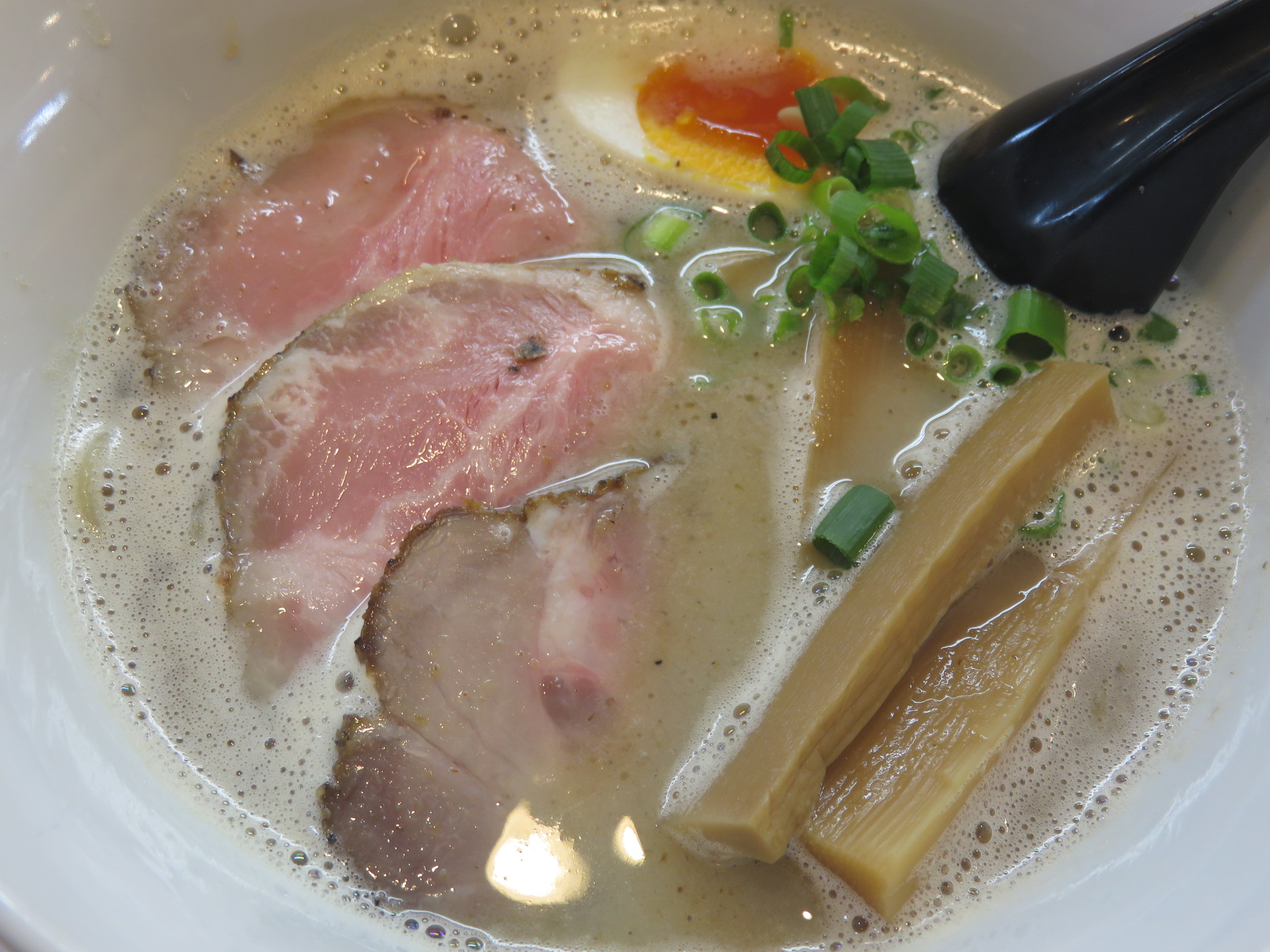 豚骨ベースに魚介を合わせた白湯塩です。