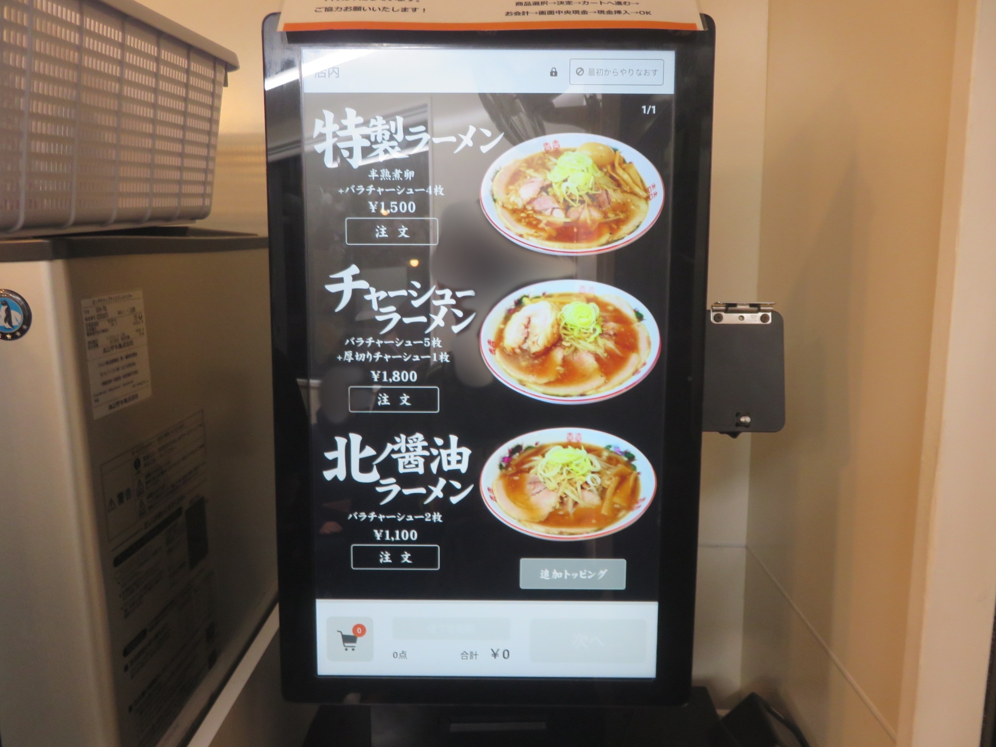 どれにするか少し悩みますが、ここは店名を冠した基本の北ノ醤油ラーメンをタップします。
