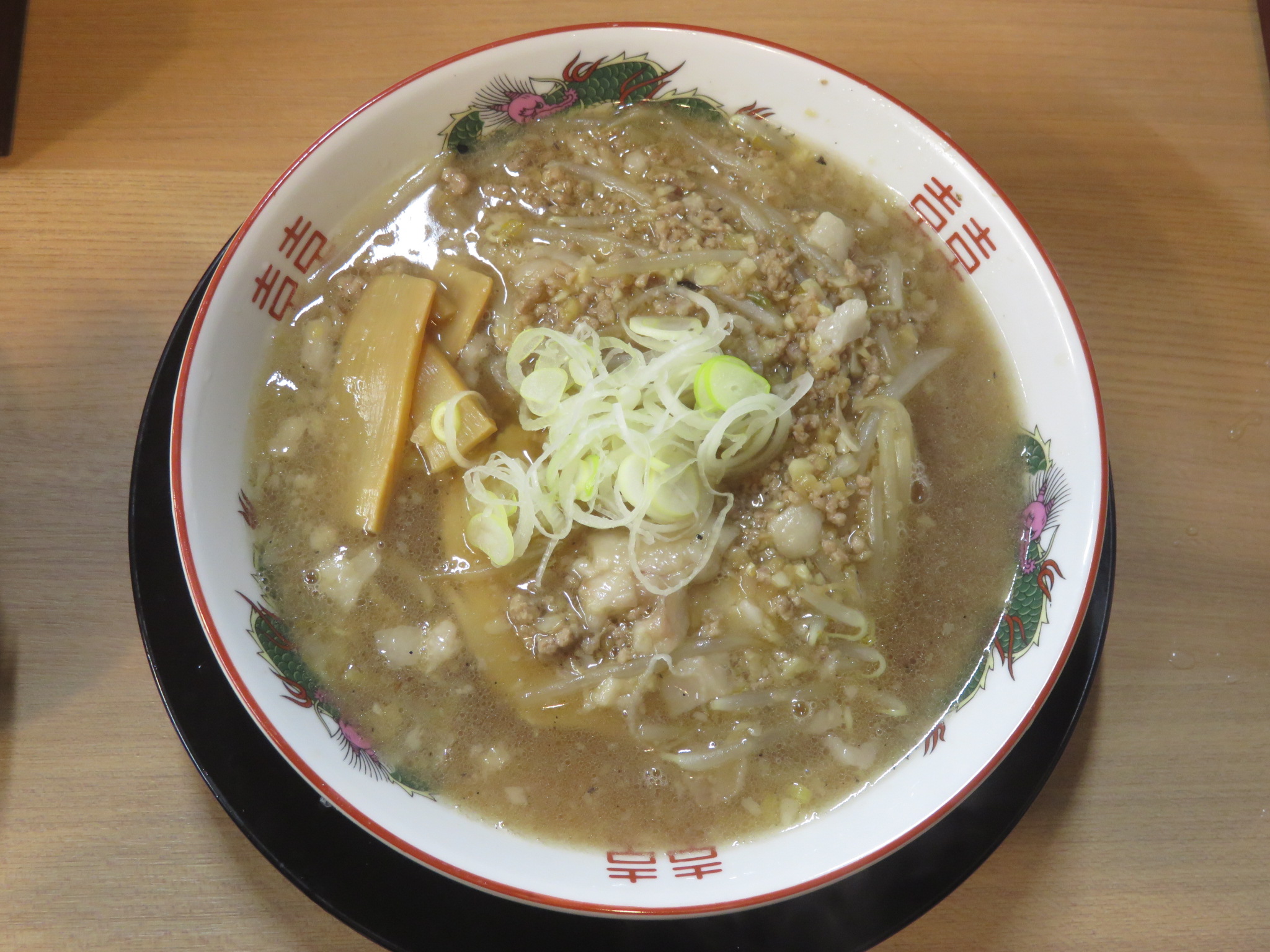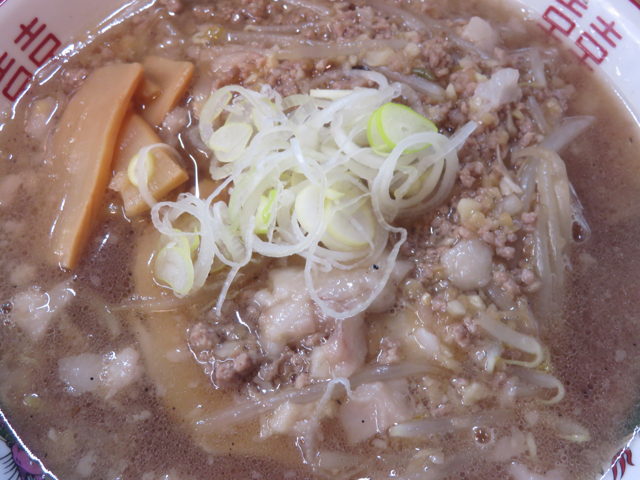| 具 | 豚チャーシュー、ひき肉、メンマ、モヤシ、刻みネギ、背脂 |