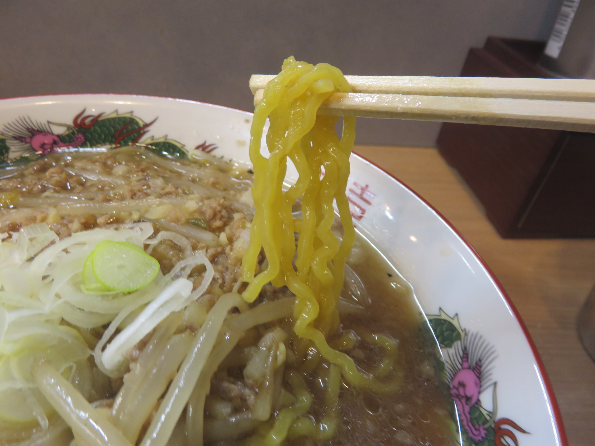ぷりしこ感のある麺で、北国っぽい黄色の縮れ麺となっています。